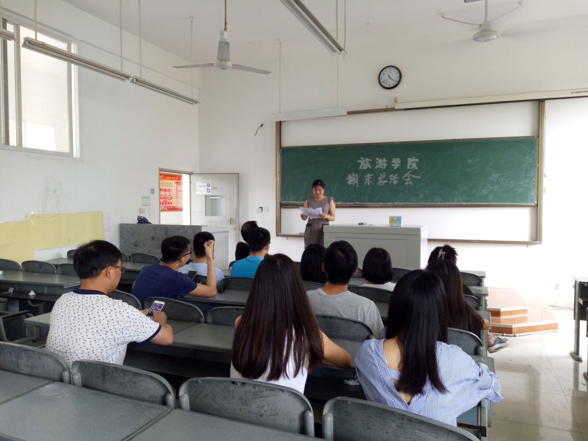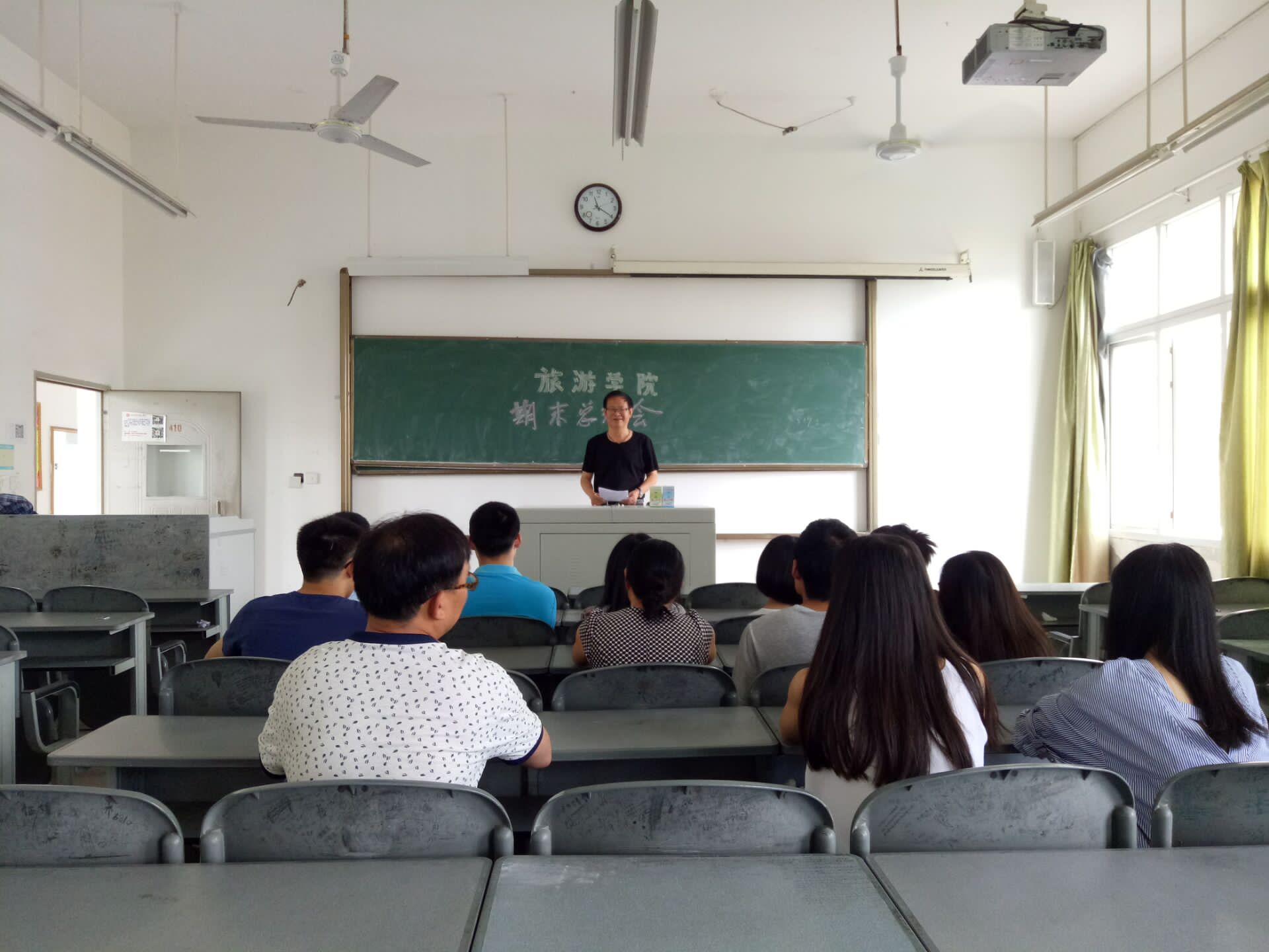 6月15日,旅游学院召开全院教职员工大会,传达贯彻学校6.14会议精神,安排和部署期末工作及下学期工作。