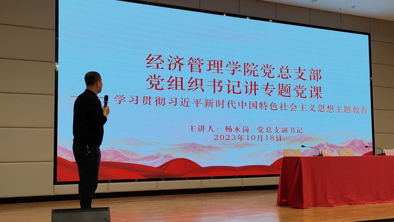听党话,跟党走。为动员引领学生支部委员会党员认真学习领会习近平新时代中国特色社会主义思想,努力掌握这一重要思想的世界观和方法论。2023年10月18日下午4点30分,经济管理学院党总支部在龑江c区报告厅开展党总支部党组织书记讲专题党课主题活动。本次活动由经济管理学院党总支副书记杨永岗主讲,经济管理学院全体在校学生党员、预备党员以及各班班长、团支书参加。