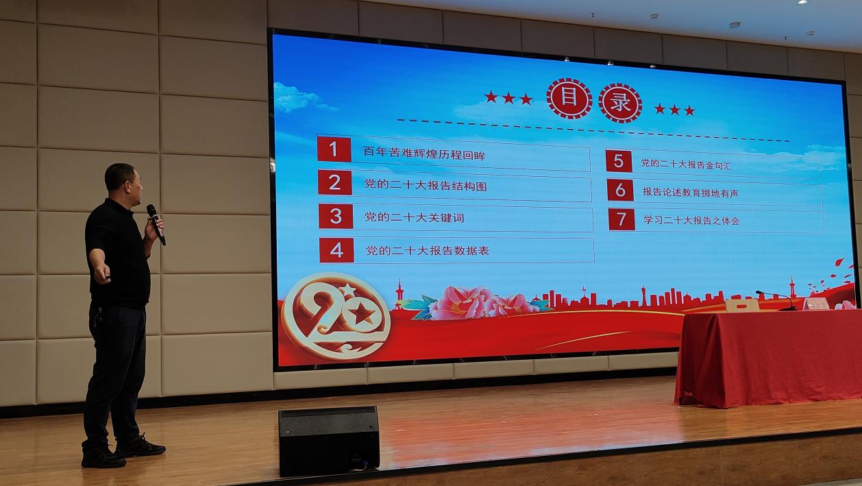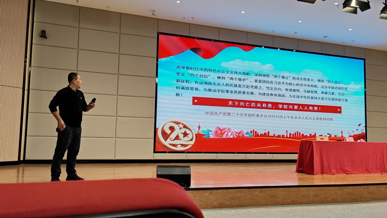 大会第四项,杨永岗讲述二十大报告相关知识。他向在场同学们讲述了二十大的主要任务并从国内生产总值、我国经济总量、城市化率、制造业规模、外汇储备居民人均可支配收入等方面向在座同学们展示了党的二十大成果以及对二十大报告体会的分享。他提出天下兴亡匹夫有责,学校兴衰人人有责。如果推动学校事业高质量发展,加快建设教育强国,也必将有力的推动中国梦的实现。