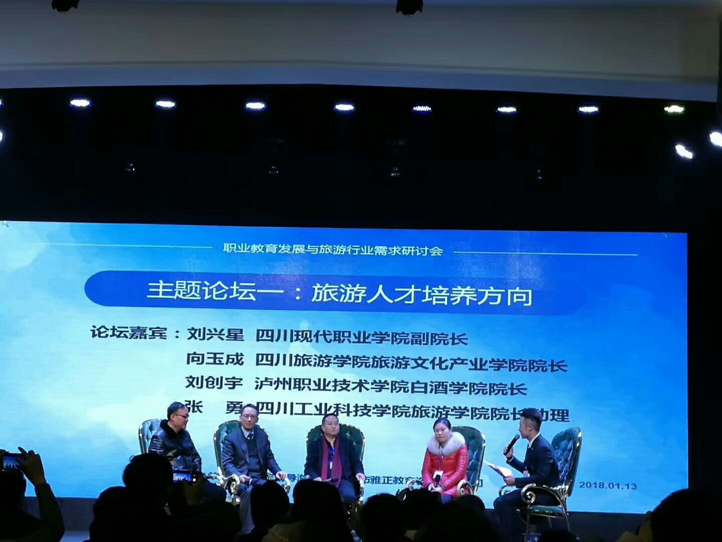 2018年1月13日,我院应邀参加“职业教育发展与旅游行业需求”论坛。本次论坛,由成都旅游导游协会、成都雅正教育咨询有限公司主办,汇聚了来自省内40余所高校的专家学者、旅游行业的企业家以及资深导游和成都市旅游局的官员300余人。