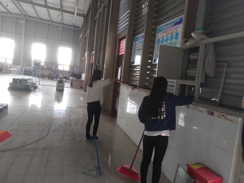 在进行了简要的注意事项说明和工具分配后,志愿者们分组对实训楼进行全面相关安全隐患排查及卫生打扫。劳动过程中,志愿者们分工明确,有条不紊的清理残留废物、整理堆放物品、擦拭器具、拖洗地板、整理桌椅,检查实训楼的每个角落,排查不安全地方并进行整改。