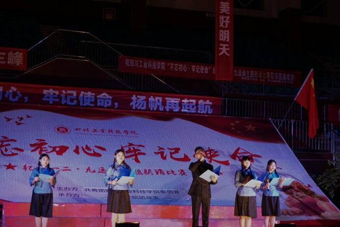 图为我院学生朗诵诗歌《相约路上,回首展望》