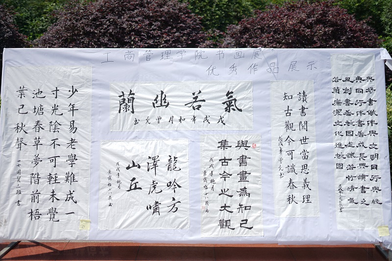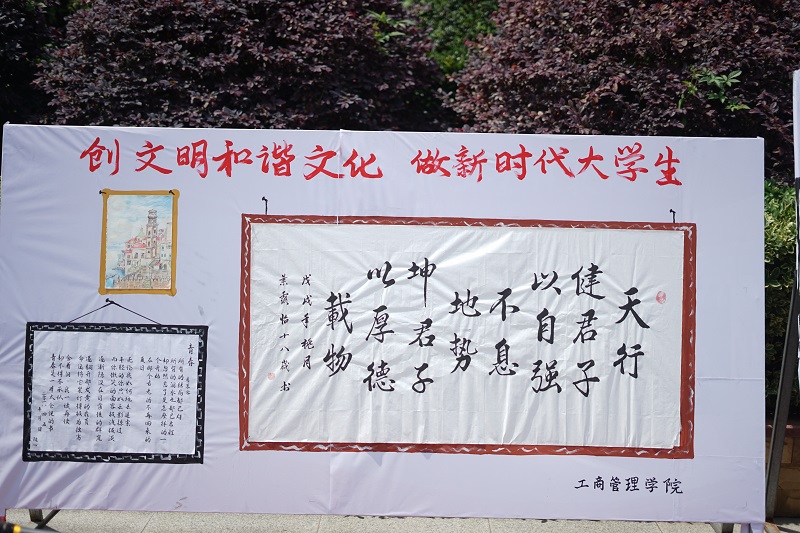 4月26日,由工商管理学院主办,易班发展中心协办的“创文明和谐文化,做新时代大学生 ”书画展活动在图书馆门口举行。学院党支部副书记邵长辉参加此次活动。