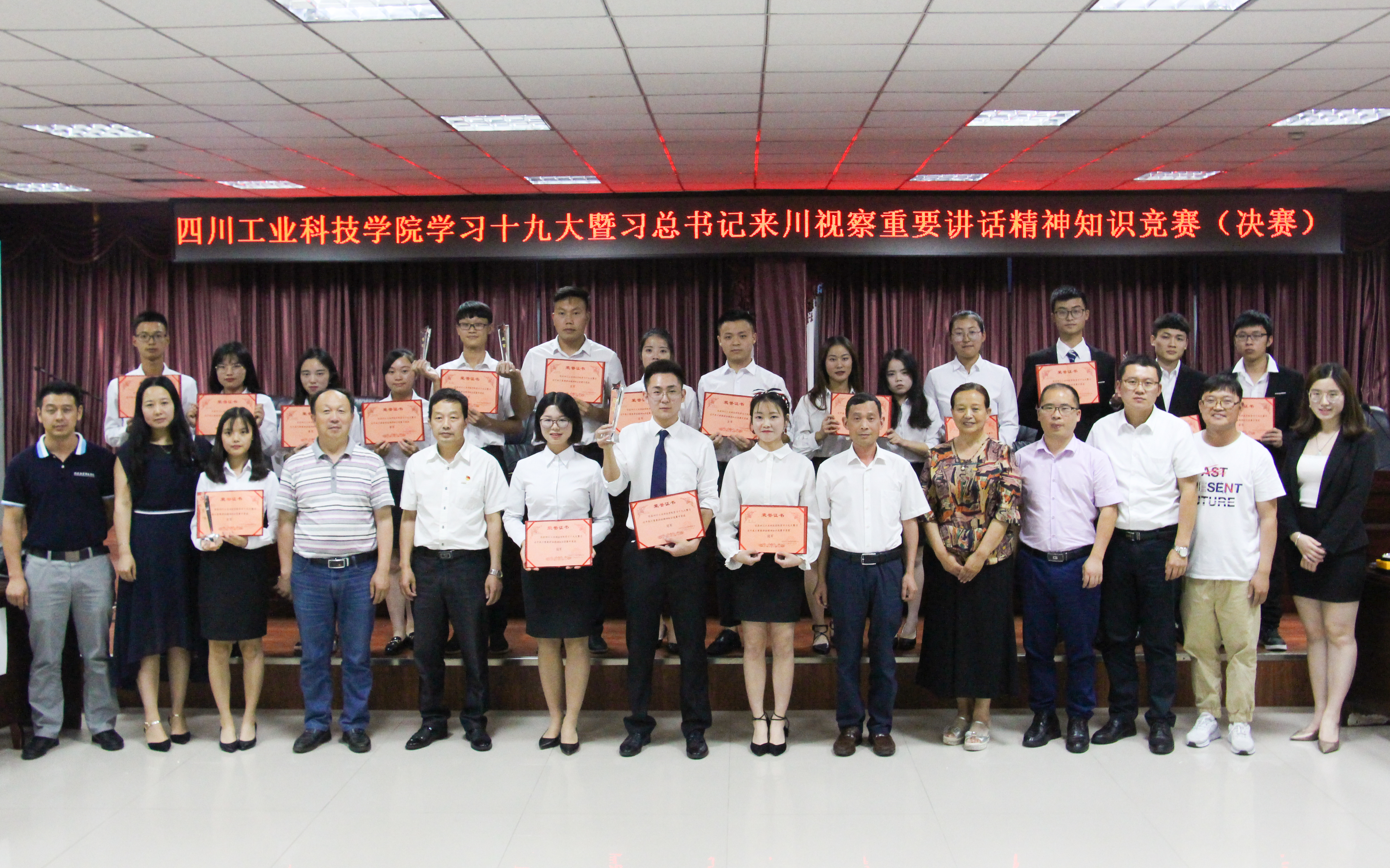 5月31日,由校党委组织部主办,旅游学院党支部承办的“四川工业科技学院学习十九大暨习总书记来川重要讲话精神知识竞赛”在图书馆D-08会议室进行。党委书记魏崛、党委副书记张进砂、副校长倪霞等领导出席。