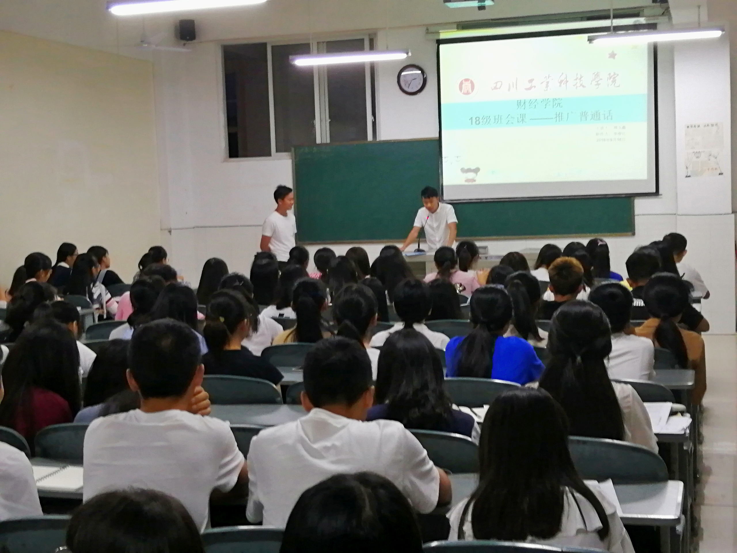 9月16日,18级财务管理4班在毓秀楼206教室开展“推广普通话”主题班会。参与本次班会的是18级4、5、6班的全体同学。