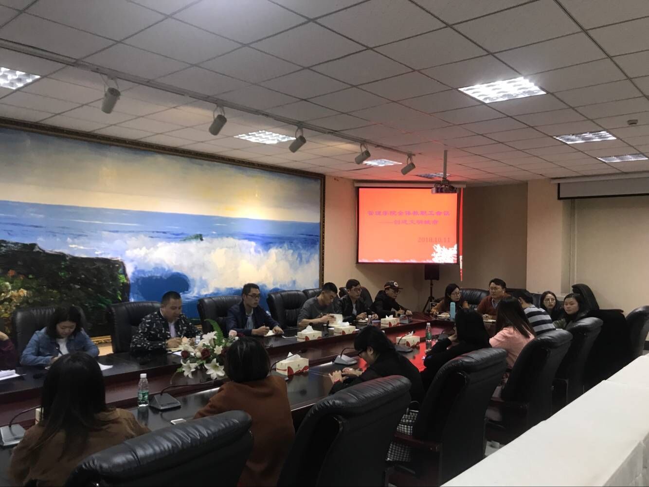 2018年10月11日下午,管理学院在校图书馆D401召开管理学院全体教职工会议,会议围绕学习《创建全国文明城市工作方案》的主题展开。管理学院全体院领导班子、全院教职工共39人参加了此次大会,大会由王进院长主持。