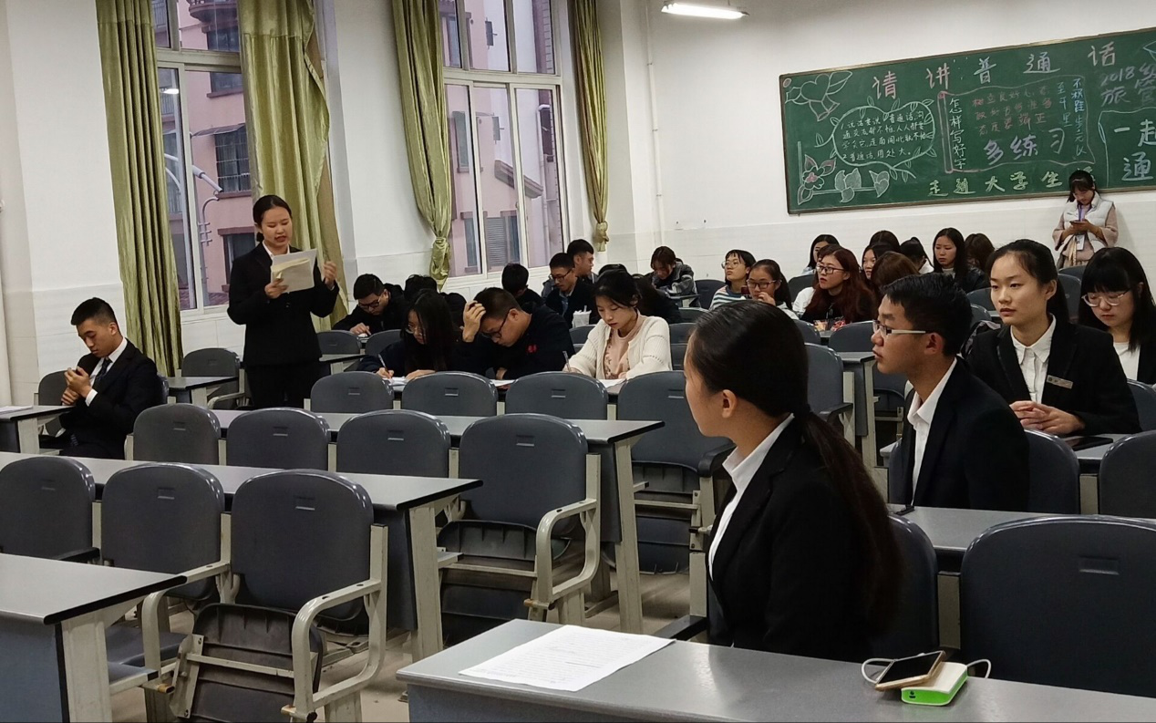 10月23日下午,由财经学院主办的辩论赛复赛第二场在毓秀103举办。本次比赛由陈晓兰同学主持,参赛班级为17级3班和18级6班,本次比赛的评委有古宇,潘新桥,杨旭,旁听本次比赛的是来自17级3班、18级6班参赛班级的部分同学。