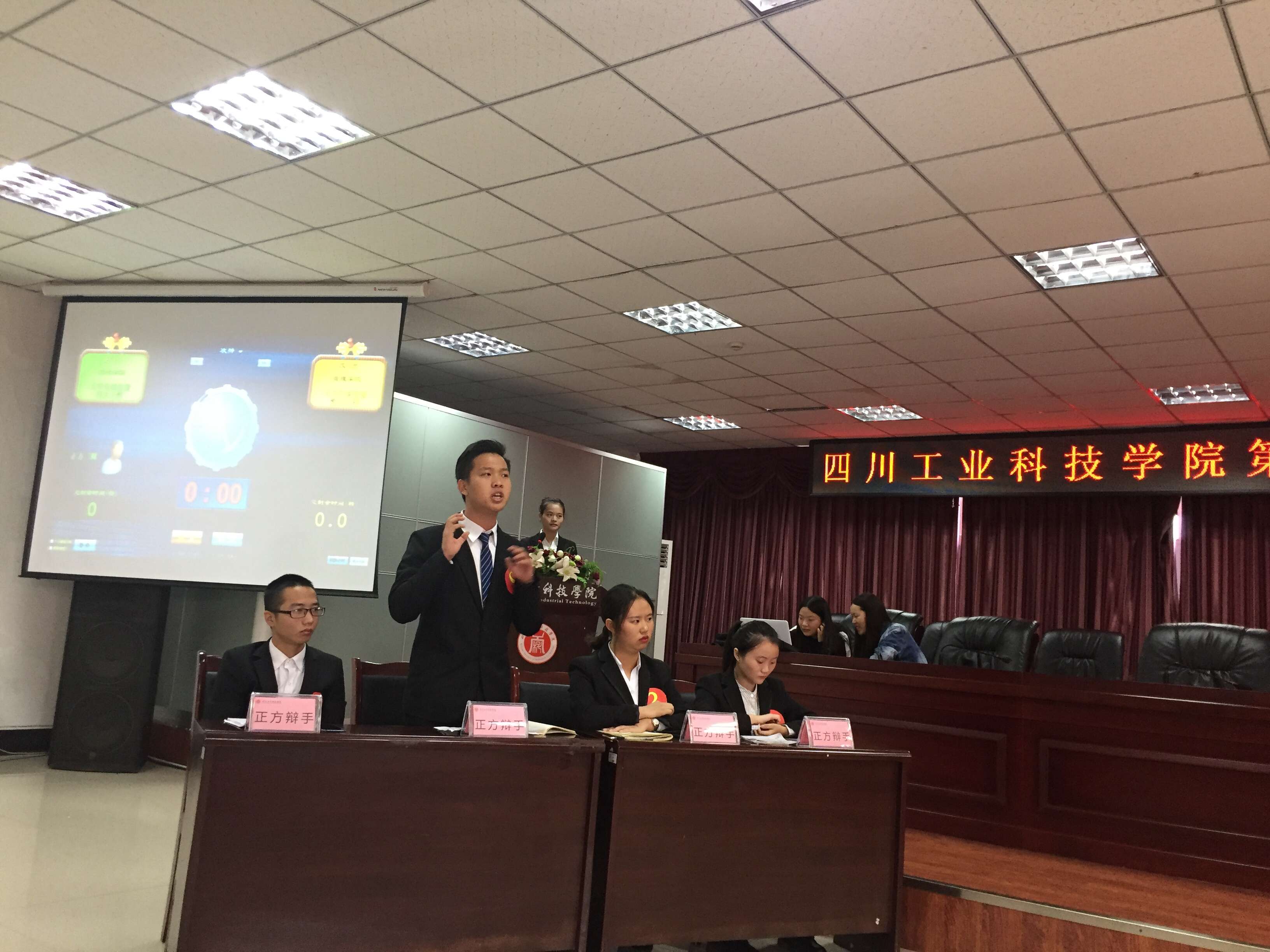 本次比赛,财经学院的辩题为“大学生谈恋爱是利大于弊还是弊大于利”。财经学院代表队为正方,认为利大于弊,开篇即从个人和国家两个层面论述。个人层面是可以提高自身沟通能力和交际能力,而且还能改变消费观念。在国家层面,教育部未曾反对过大学生恋爱,学校亦不曾反对。正方开门见山直入主题引得观众的热烈掌声。管理学院代表队为反方,认为弊大于利,提出大学生经济未独立,应先满足自身需求再谈其它,大学生的主要任务是学习等观点反驳正方,并提出经调查:58%的大学生谈恋爱为了打发时间,这样的恋爱是不公平的。双方针锋相对,有理有据,引得观众掌声不断。