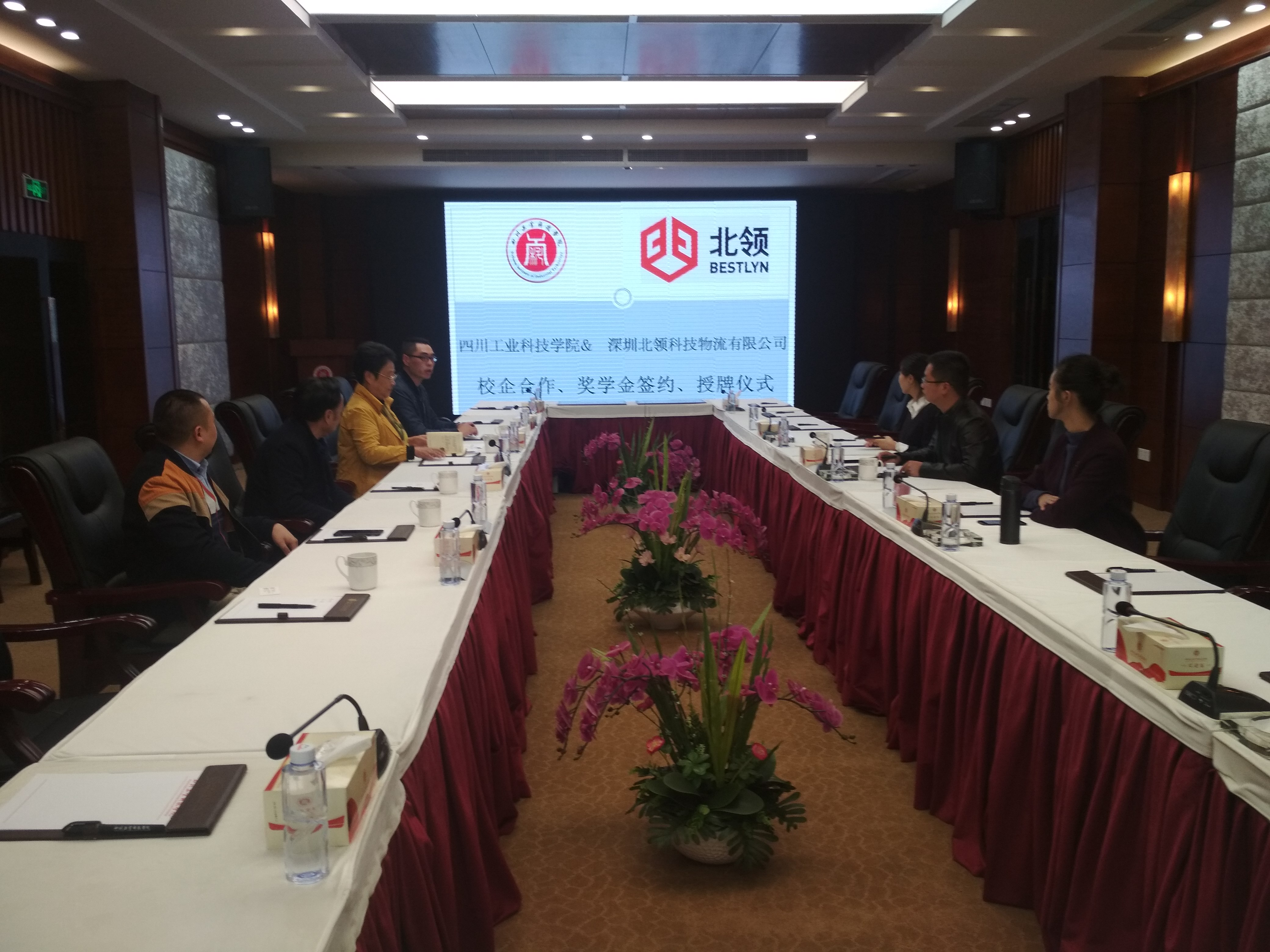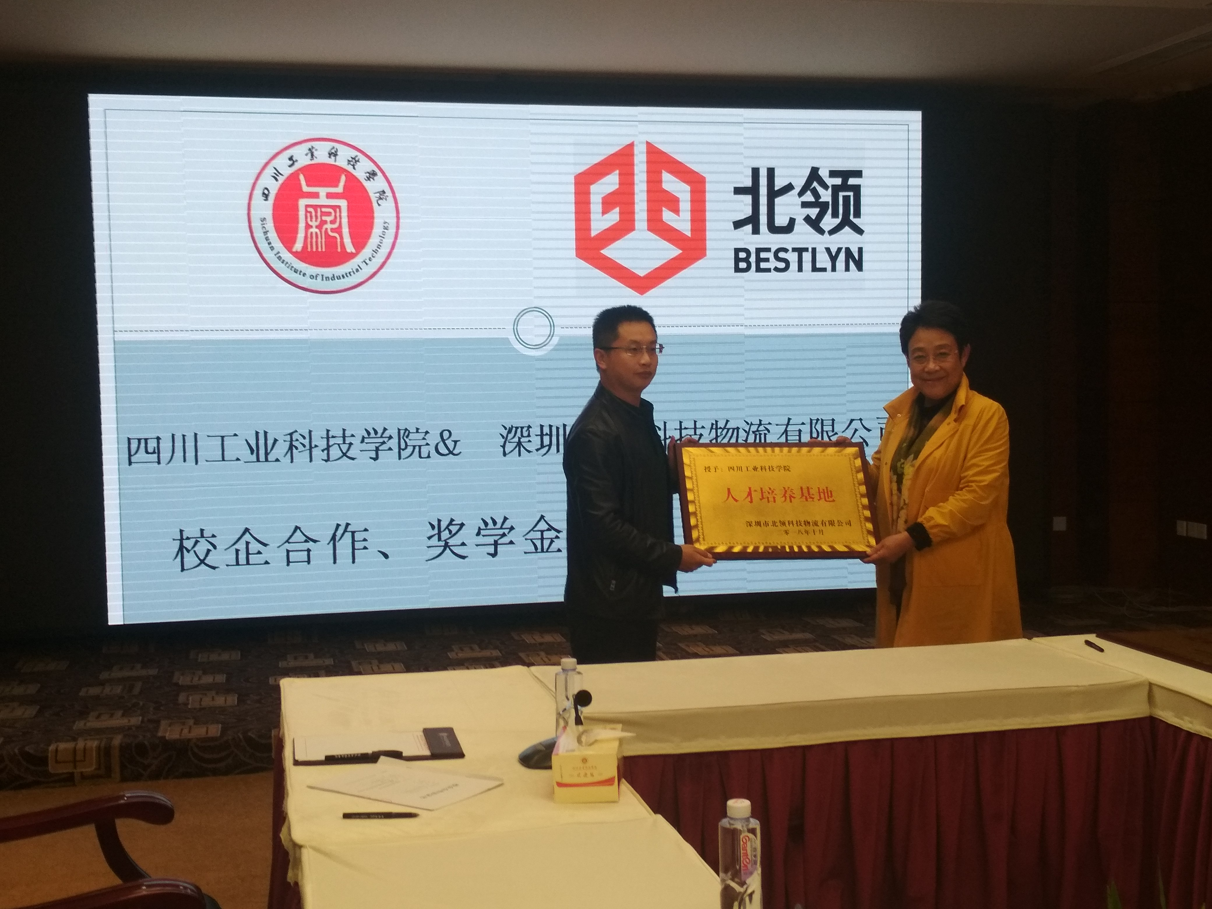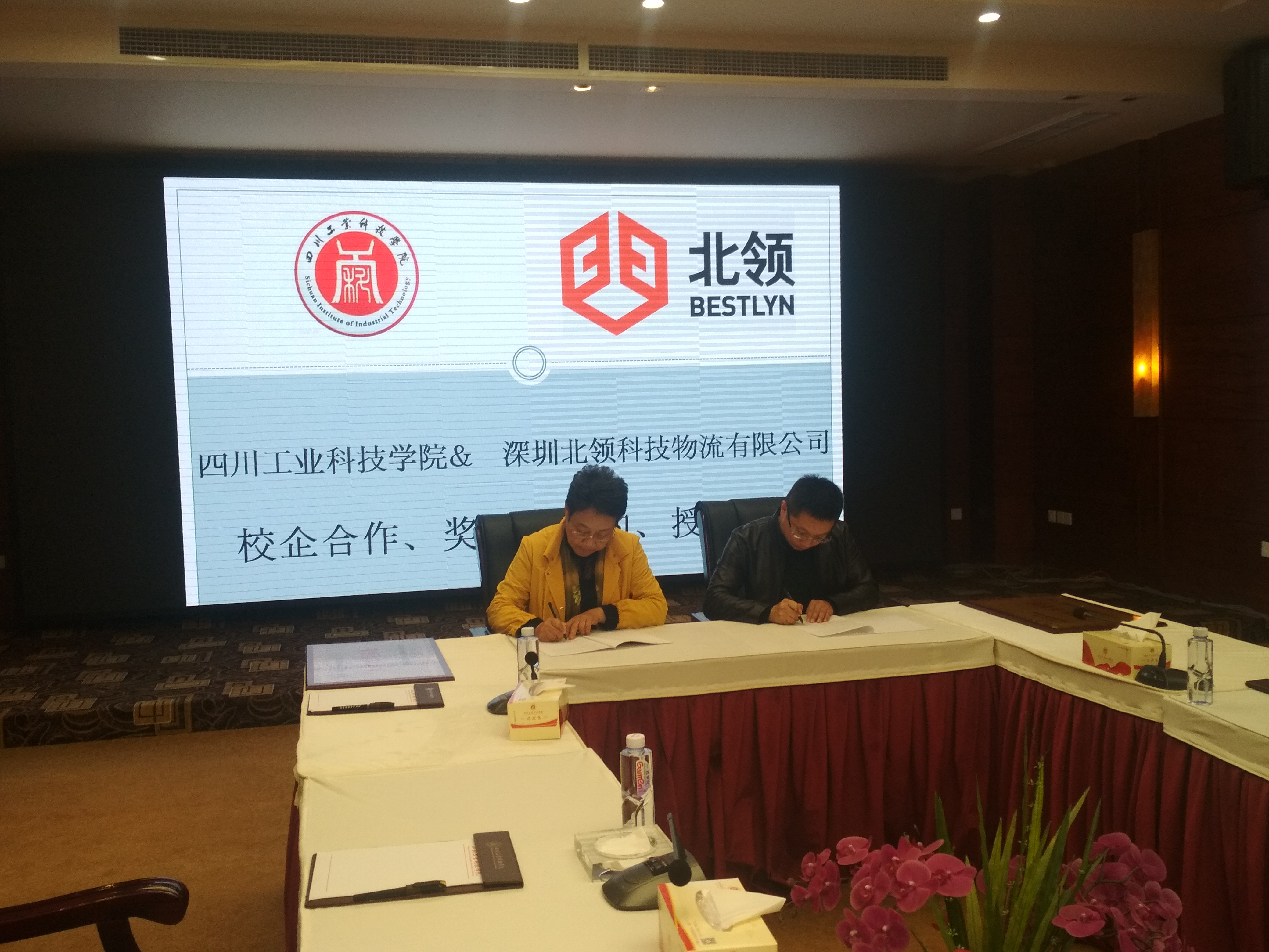 2018年10月25日,深圳北领科技物流有限公司与四川工业科技学院在图书馆国际会议厅进行了校企合作协议暨北领奖学金签约仪式。四川工业科技学院副校长何义兴、副校长郭桂萍、管理学院院长王进、副院长熊清明、深圳北领科技物流有限公司西南大区运营管理部总经理蔡守哲、西南大区人事经理夏文婕、成都分公司双流园区人事主管李中贵出席签字授牌仪式。