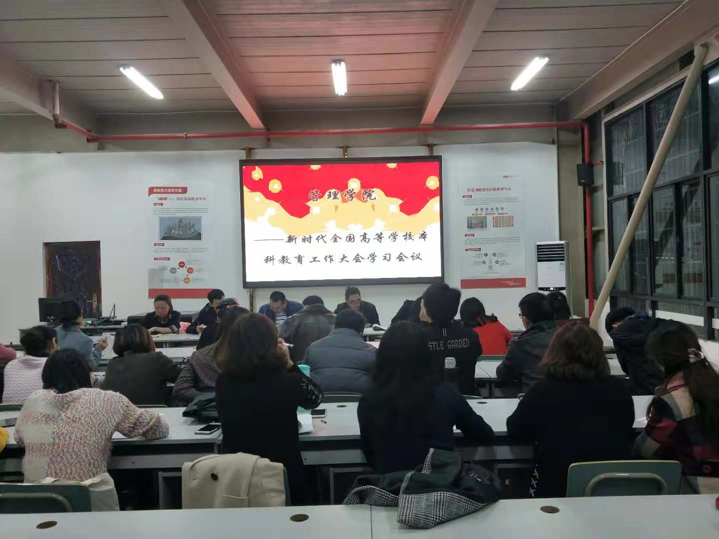 2018年11月13日下午,管理学院在在实训室召开管理学院全体教职工会议,会议围绕学习《新时代全国高等学校本科教育工作会议》的主体展开。会议强调,高教大计、本科为本,本科不牢、地动山摇。人才培养是大学的本质职能,本科教育是大学的根和本,在高等教育中是具有战略地位的教育、是纲举目张的教育。高等教育战线要树立“不抓本科教育的高校不是合格的高校”“不重视本科教育的校长不是合格的校长”、“不参与本科教育的教授不是合格的教授”的理念,坚持“以本为本”,把本科教育放在人才培养的核心地位、教育教学的基础地位、新时代教育发展的前沿地位。高校领导注意力要首先在本科聚焦,教师精力要首先在本科集中,学校资源要首先在本科配置,教学条件要首先在本科使用,教学方法和激励机制要首先在本科创新,核心竞争力和教学质量要首先在本科显现,发展战略和办学理念要首先在本科实践,核心价值体系要首先在本科确立。
