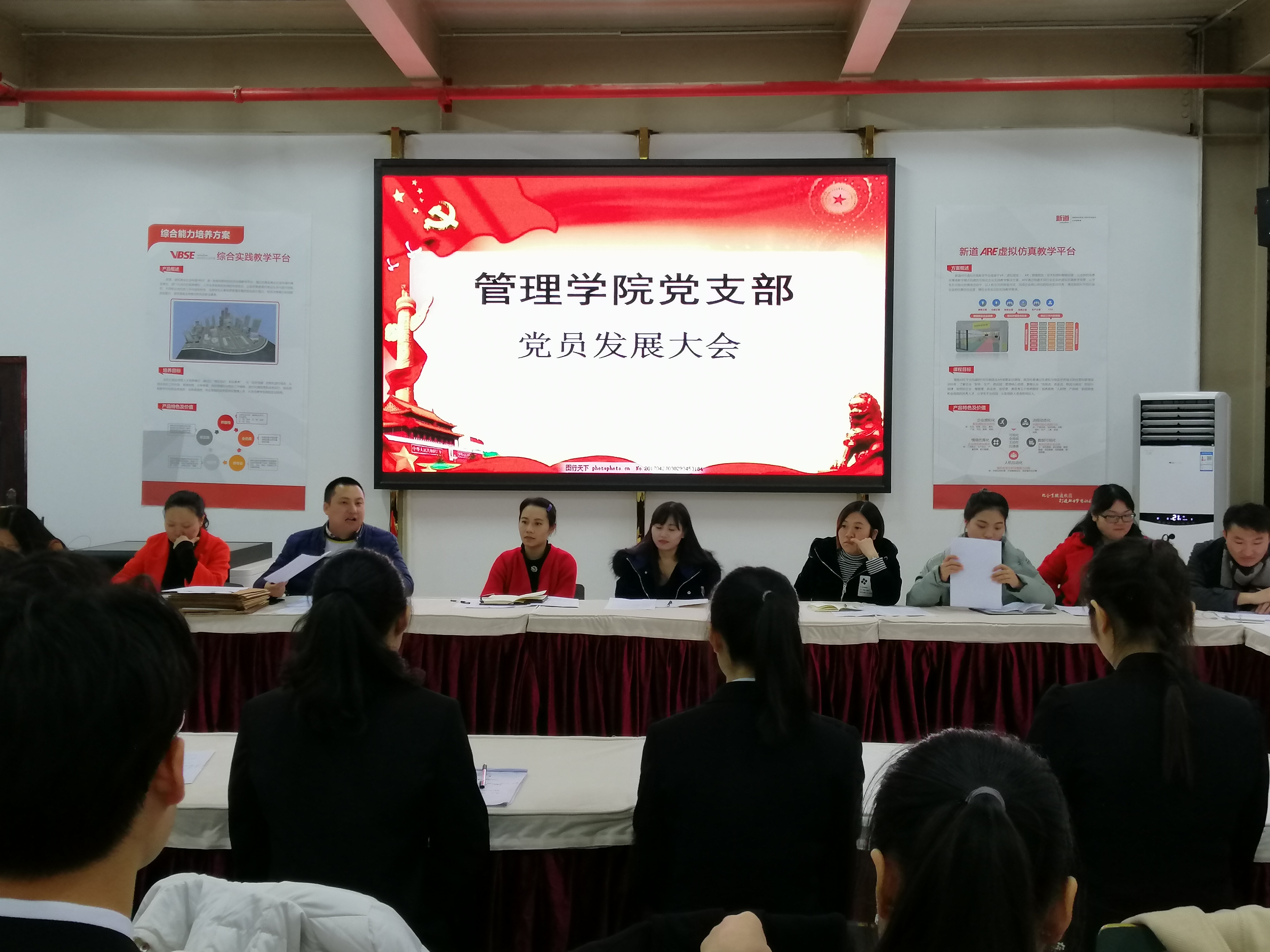 11月16日下午,管理学院党支部党员发展大会在ARE实训中心举行。管理学院院长王进、19名中共党员教师、学生、第21批预备党员、第23批入党积极分子参加了会议。会议由王进主持。