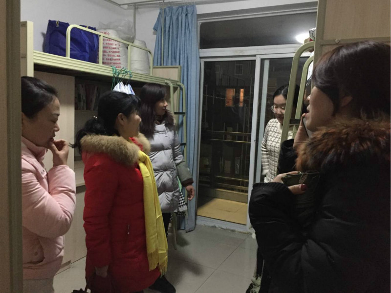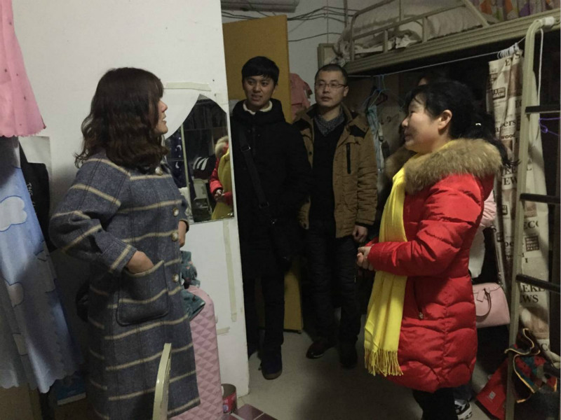 2月23日晚,财经学院院长卢淑梅带领老师们前往宿舍关心学生返校情况,一同前往的还有财经学院团总支书记仝科及各老师。