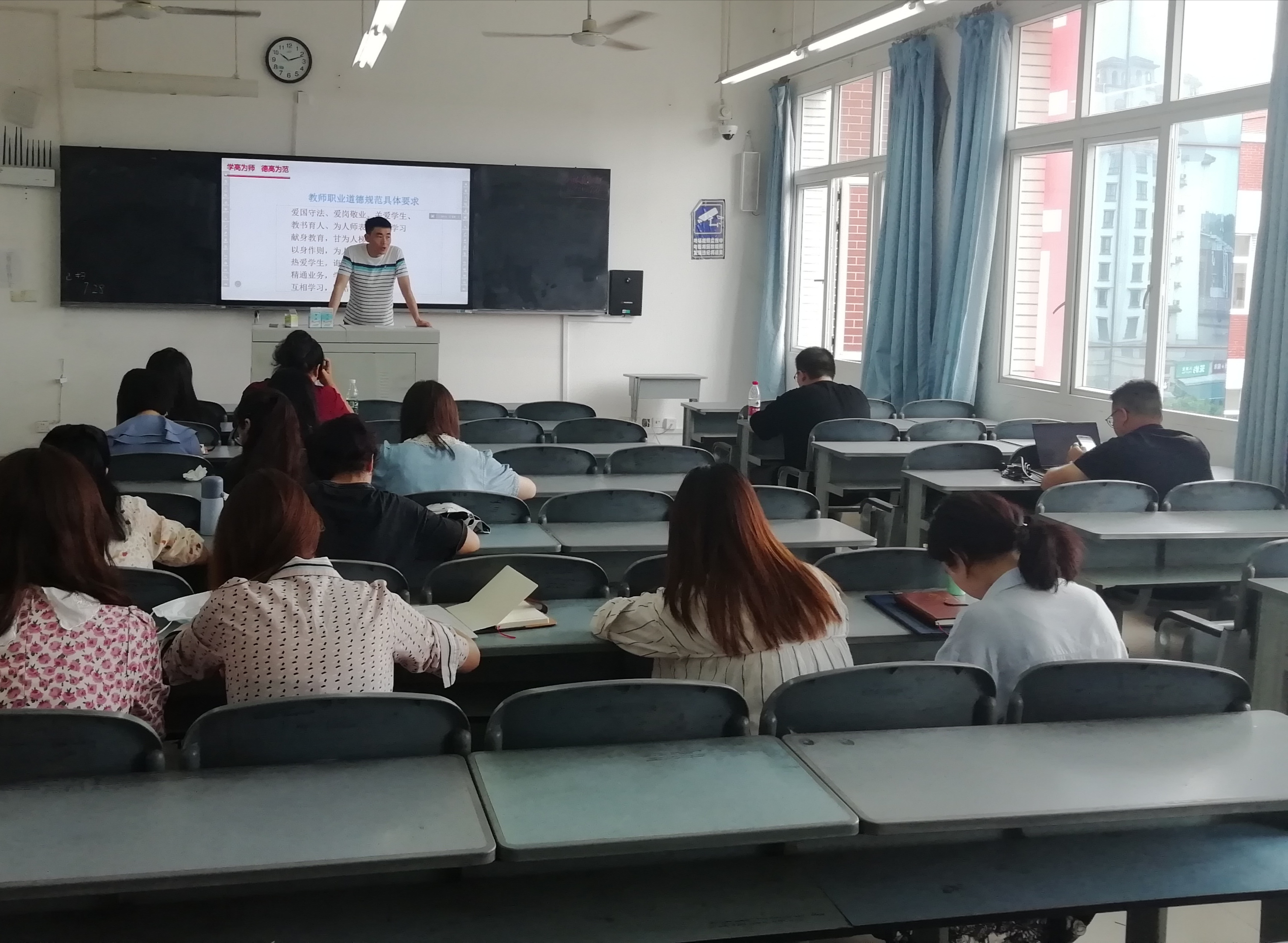 9月1日上午930,管理学院所有新入职教师们包括不满一年的教职工在6-401教室展开了学院教师职业能力培训的第一课。