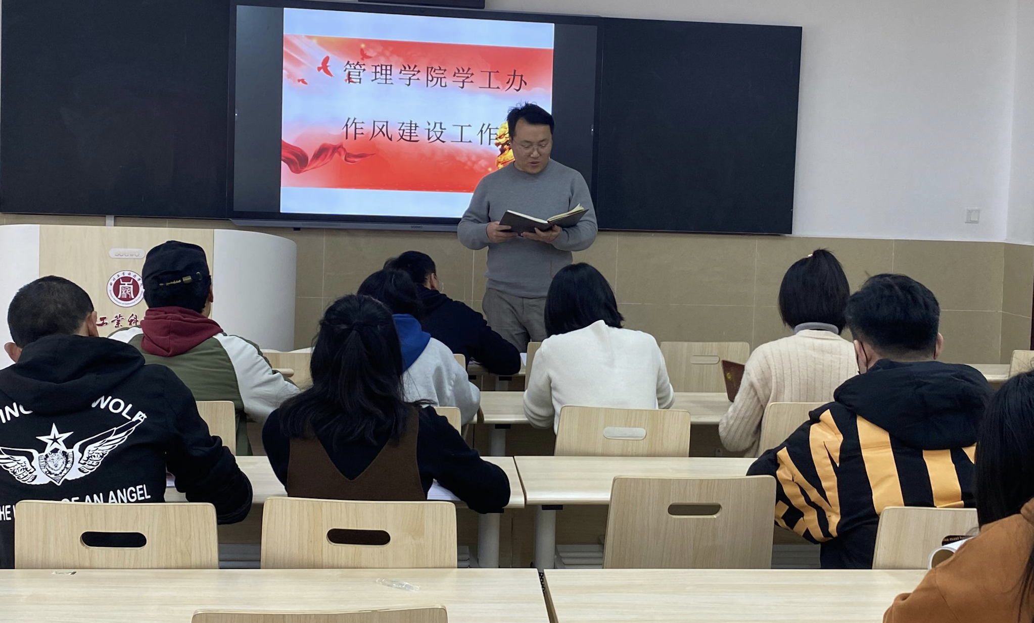 3月8日上午,学院学工办在B301召开作风建设工作专题会,学院党总支副书记张东国、学工办副主任魏来及全体辅导员参加会议。