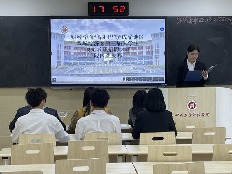 4月9日,由财经学院在龑江学区B203举行的“智汇巴蜀”成渝地区双城经济区第三届大学生模拟求职大赛院内选拔赛成功落下帷幕。参赛人员为19级各班参选同学,财经学院团总支书记秦德红,财经学院辅导员李鼎曌、刘兴丽老师到场参加。
