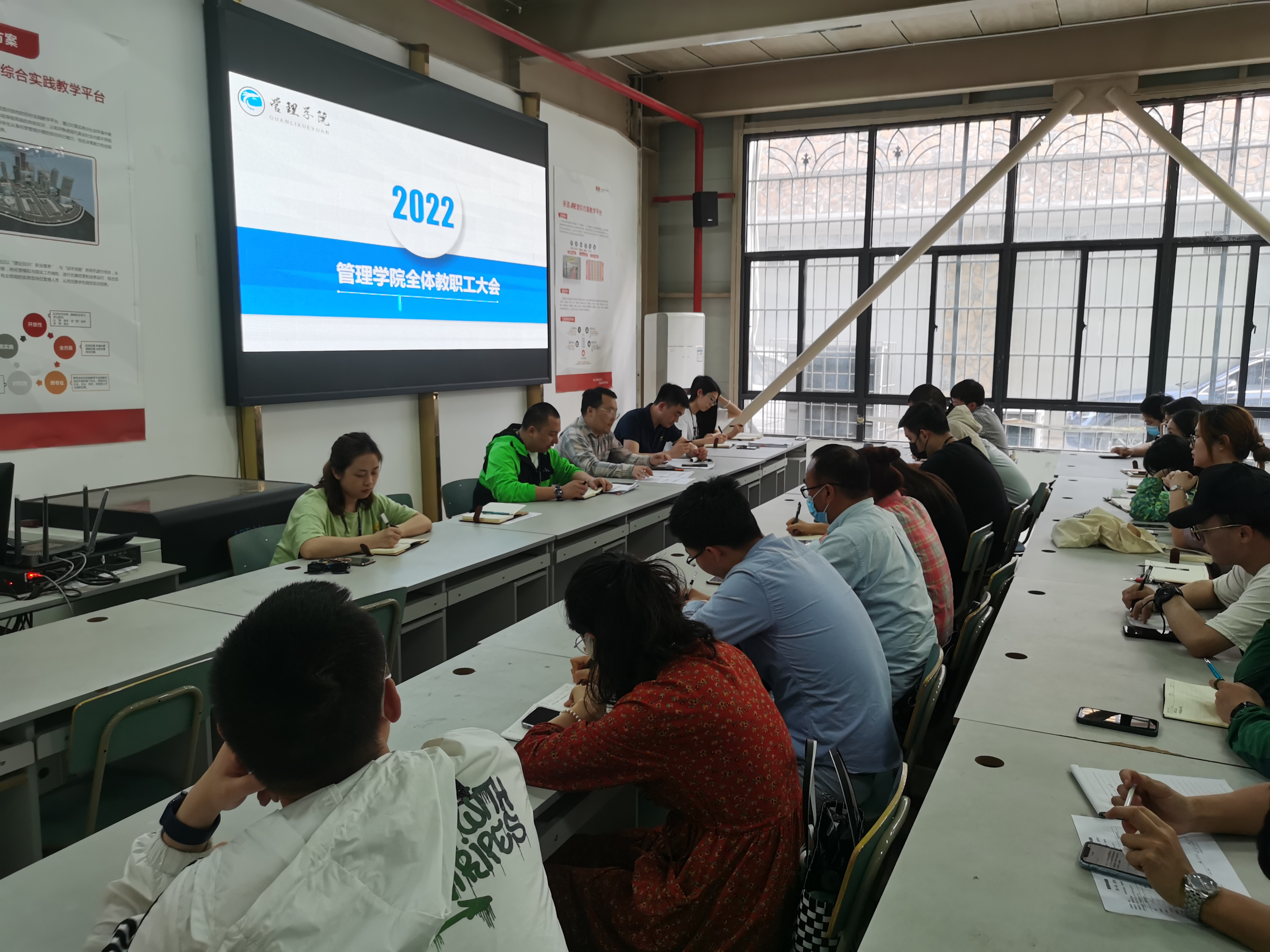 2022年4月24日下午16:30,管理学院在ARE召开全体教职工会议。会议由院长王进主持,全体教职工参加会议。