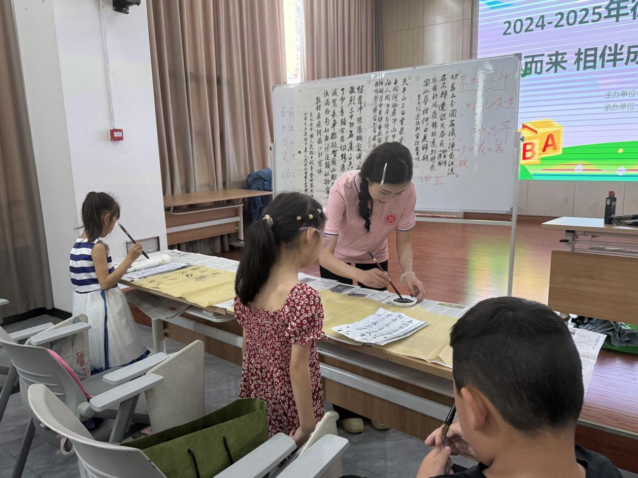 活动首日,志愿者们化身“图书管理员”,既高效完成社区图书分类归档,为孩子们打造整洁阅读角;又以笔墨为媒,手把手指导书法练习。孩子们在横竖撇捺间感受汉字韵味,活动室里墨香与童声交织,暖意融融。