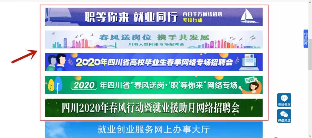 (三)本次网络专场招聘会举办期间,在有关平台使用统一宣传横幅链接至活动主页(附件2),协同联动开展网络招聘活动。活动参加方式参阅《专场招聘会参加指南》(附件3)。