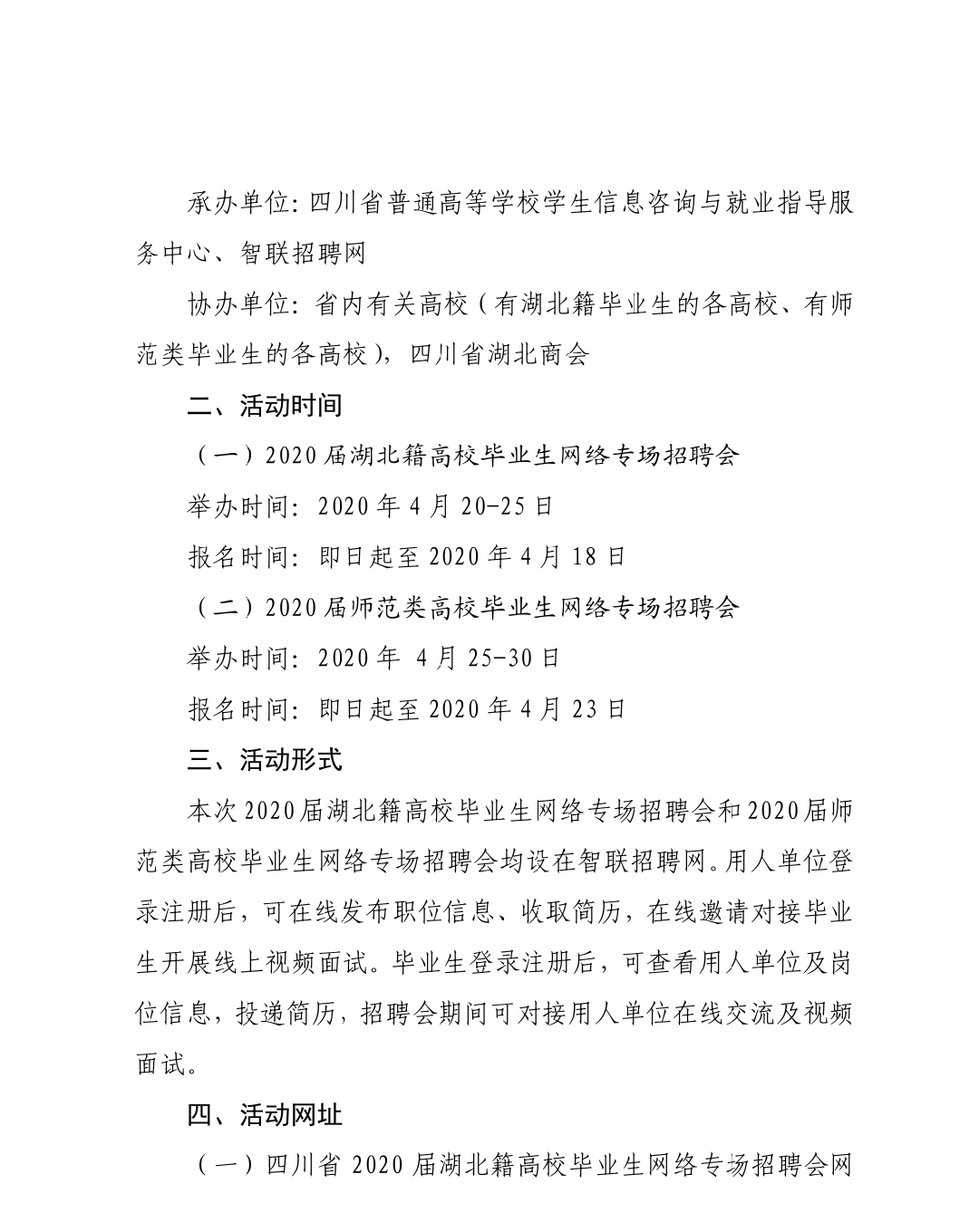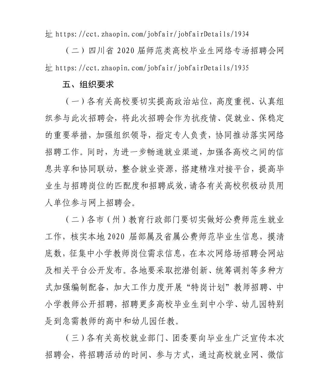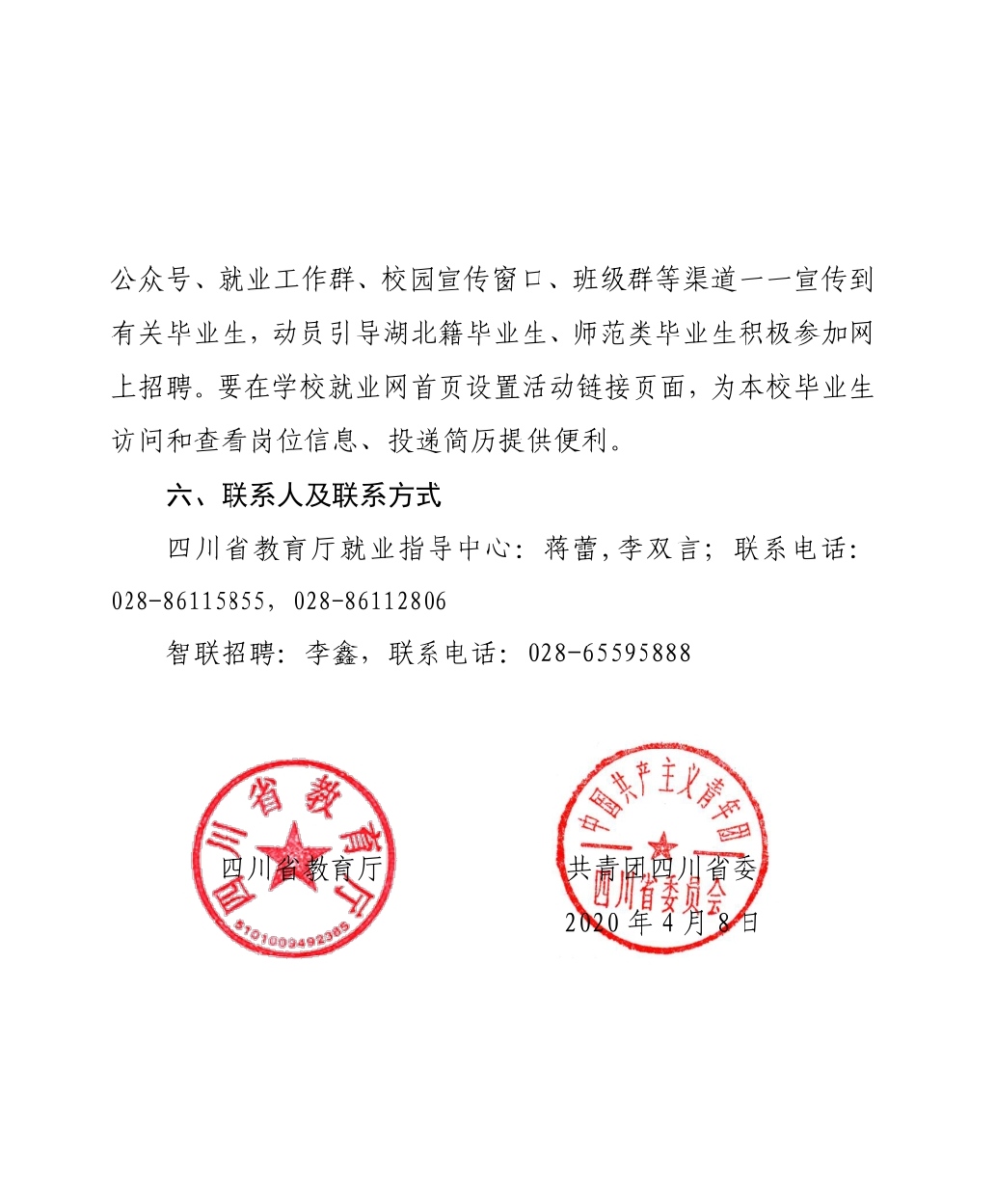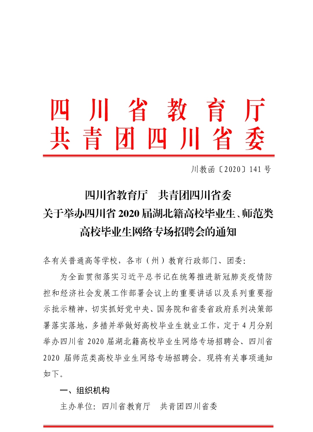 四川省教育厅 共青团四川省委 关于举办四川省2020届湖北籍高校毕业生、师范类高校毕业生网络专场招聘会的通知