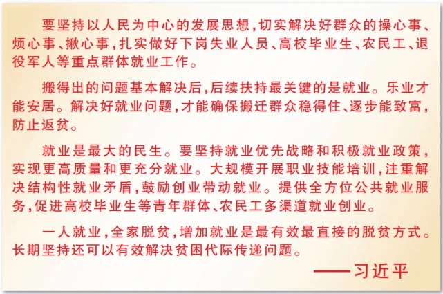 情牵百姓、心系民生,习近平总书记高度重视就业。如何创造更多就业岗位?资源枯竭型城市怎样做好就业再就业工作?贫困群众易地搬迁后有没有稳定就业?高校毕业生工作找得怎么样?如何培养更多专业技术人才?这些问题,总书记始终念兹在兹。