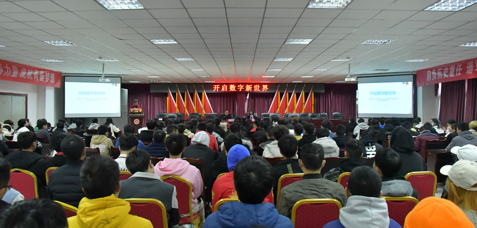 24日上午,国家制造业信息化培训中心3D班技术总工、北京昆仑三迪科技发展有限公司副总裁霍有朝在图书馆D08会议室主讲了以“开始数字新世界”为主题的讲座。学校副校长郭桂萍以及各学院双创工作负责人及200余名同学参加。