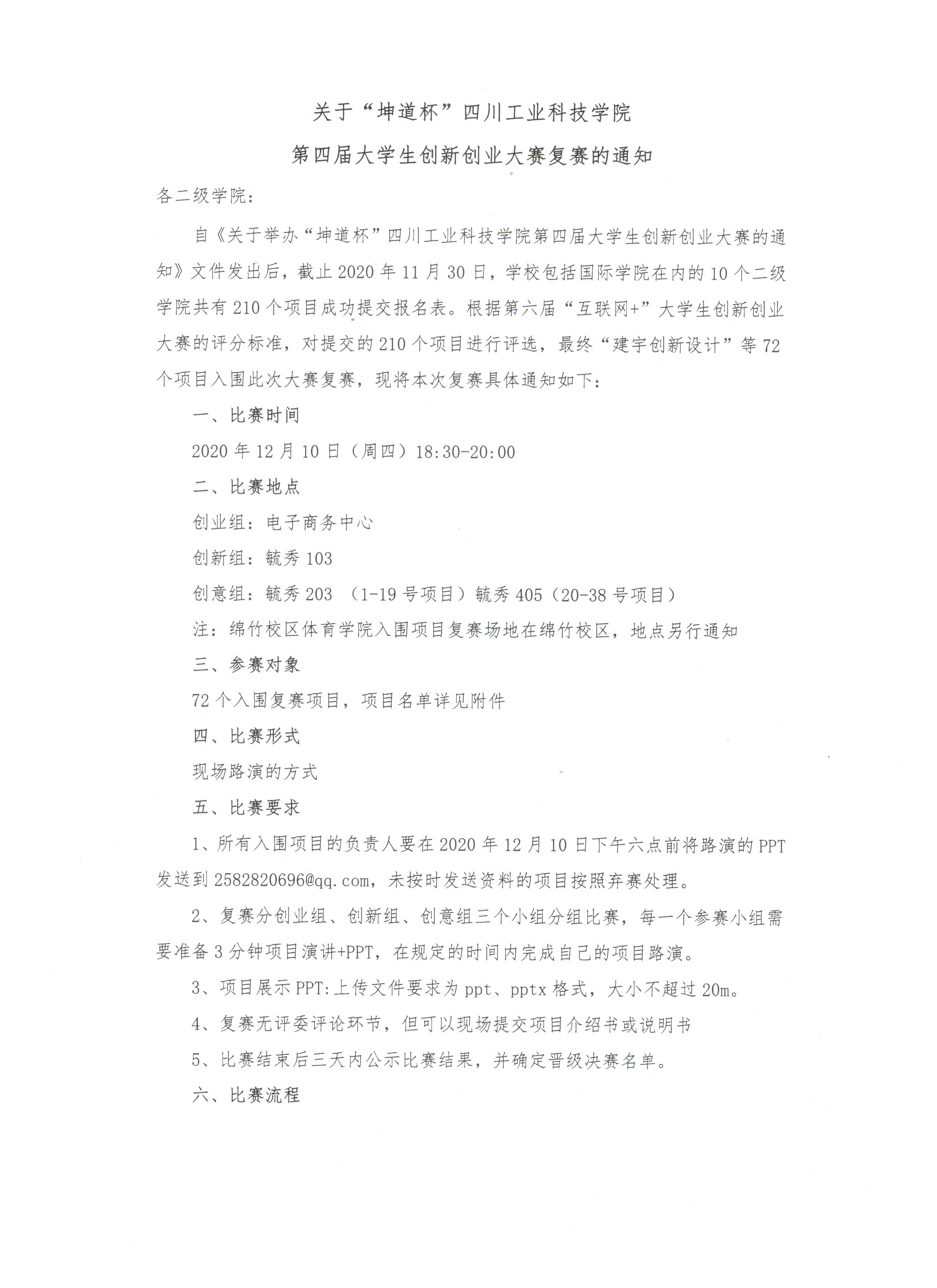 关于举办“坤道杯”四川工业科技学院第四届大学生创新创业大赛的通知