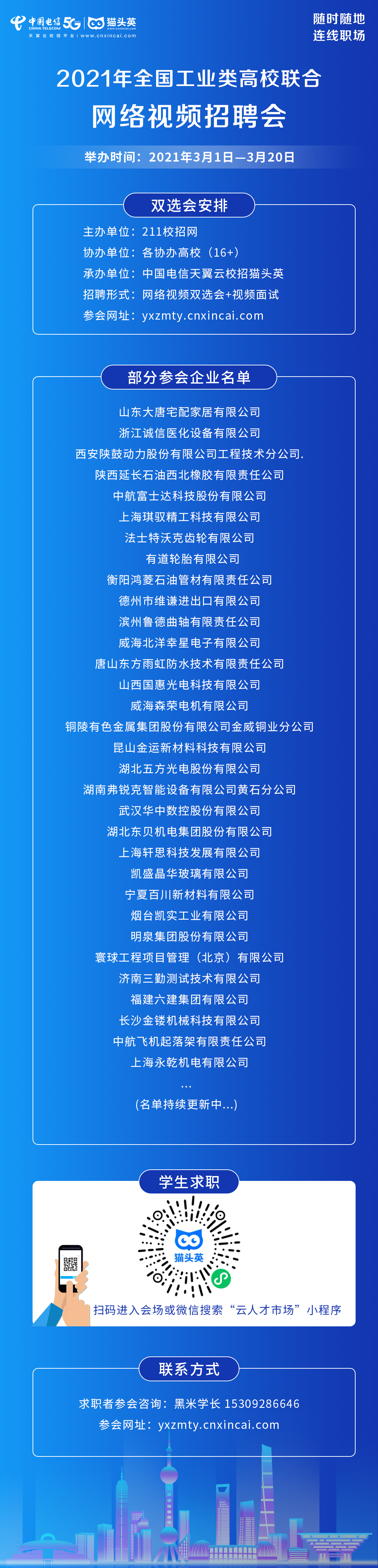 2021年全国工业类高校联合网络视频招聘会