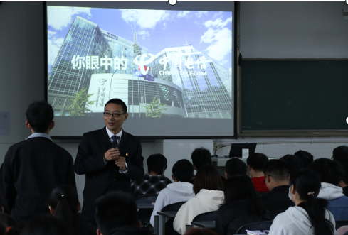 “家中使用电信宽带的请举手”讲座以胡老师用调研的的方式拉进了和同学们的距离。随后从云计算、物联网、大数据、人工智能、移动互联网为代表的新一轮信息技术为背景,深入浅出地介绍了中国电信的的企业背景、经营模式、培养模式、业绩辉煌,让同学们对电信从入职前到入职时、入职后有了贯穿始终的了解。
