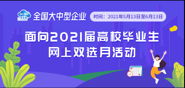 为贯彻落实党中央、国务院“稳就业”“保就业”决策部署和2021年全国两会精神,认真开展学党史、为群众办实事活动,促进高校毕业生与国有大中型企业人才供需对接,教育部、国务院国资委定于2021年5月13日至2021年6月13日举办“全国大中型企业面向2021届高校毕业生网上双选月”活动(以下简称“双选月”)。本次活动主办单位为教育部、国务院国资委,承办单位为全国高等学校学生信息咨询与就业指导中心.