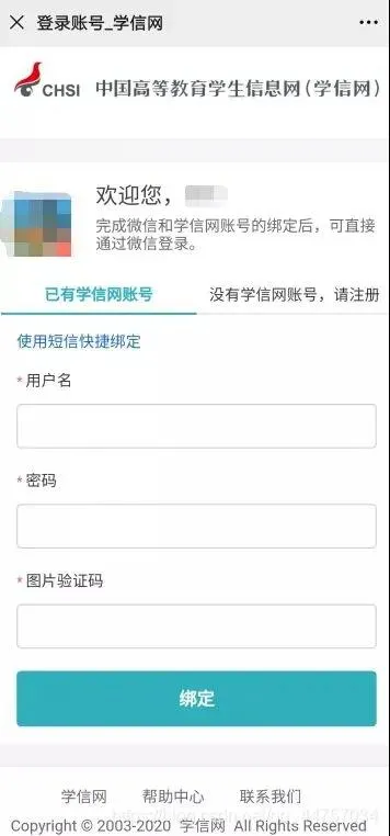 若已有学信网账号,直接登录即可完成绑定;若没有学信账号则需完成注册流程。