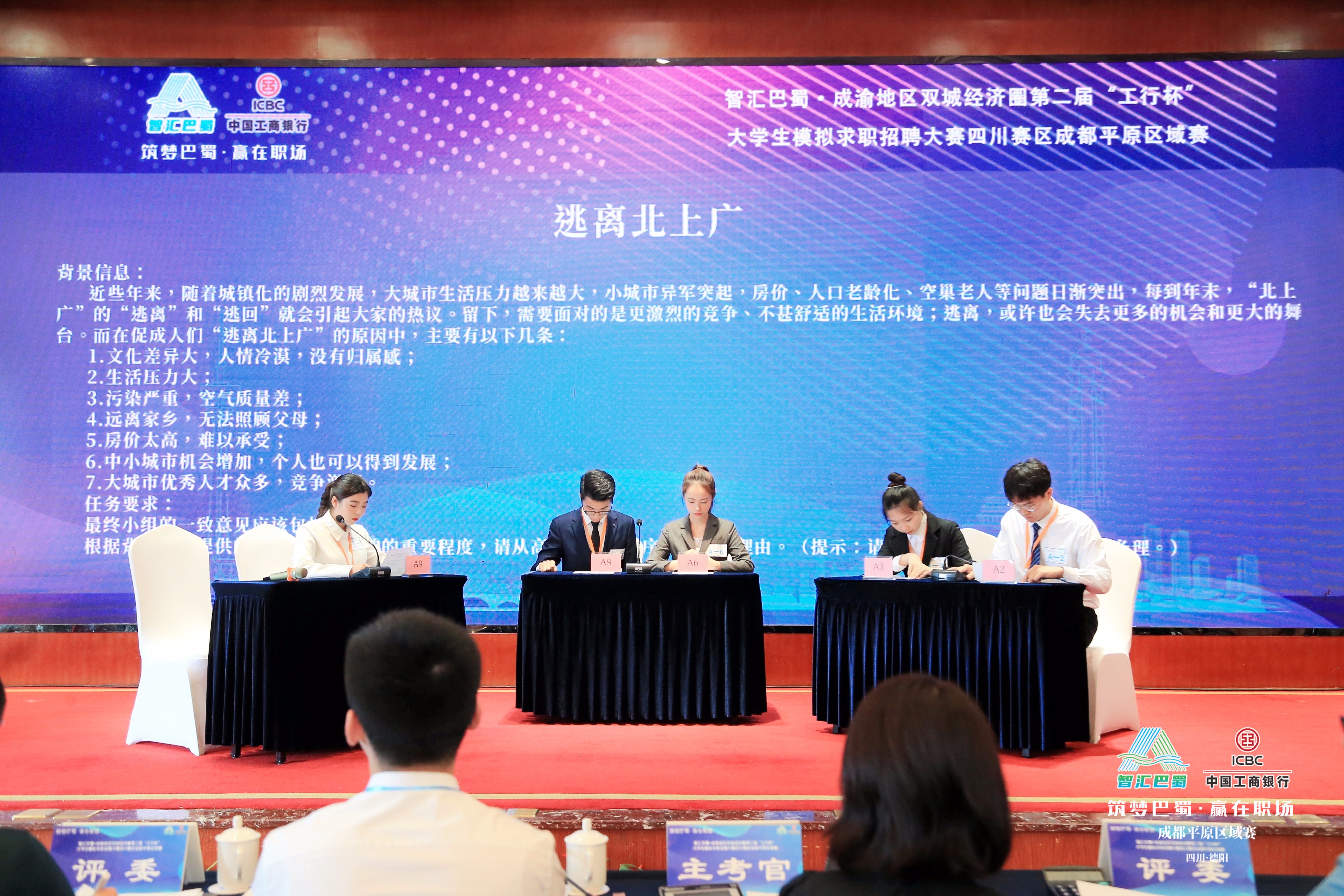 6月9日,工行杯“智汇巴蜀”成渝地区双城经济圈第二届大学生模拟求职招聘大赛四川赛区成都平原区域赛决赛在德阳蜀徽大酒店举行。