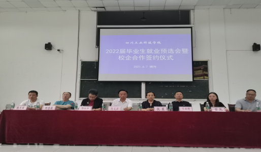 2021年6月7日上午10:00体育学院2021年校企合作签约仪式暨2022届毕业生就业预选会在绵竹校区召开。学校副校长何义兴,党委副书记、纪委书记倪霞,副校长郭桂萍、王珏翎,就业中心主任曾尧、体育学院党政,33家企业代表共同全体参加了此次活动。