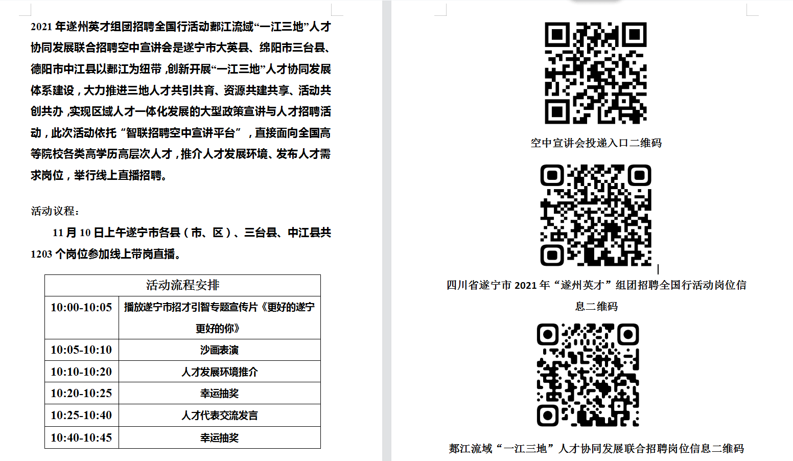 2021年遂州英才组团招聘全国行活动郪江流域“一江三地”人才协同发展联合招聘空中宣讲会
