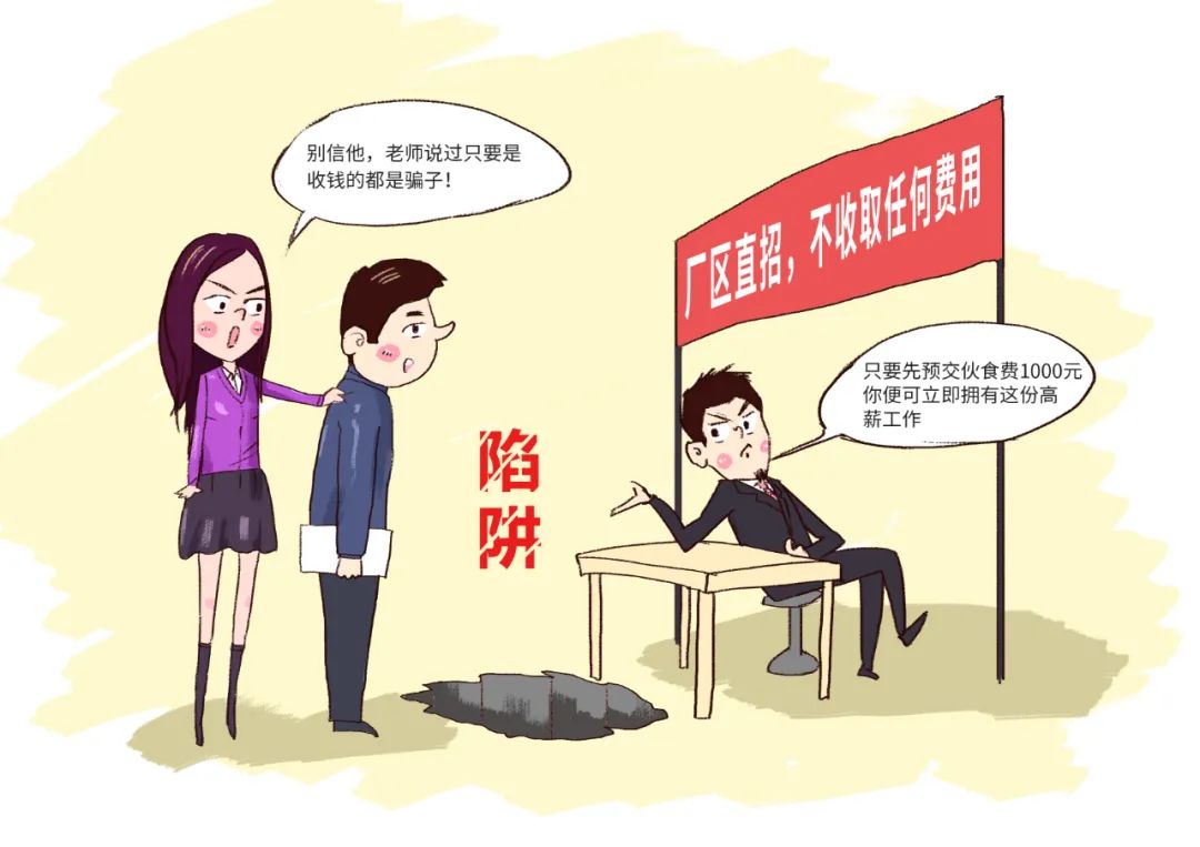 防范提示:谨记找工作并不需要费用,对于将先交报名费、培训费等作为条件的面试要谨慎对待。入职体检通常是要求求职者自行到二甲以上医院进行,正规单位不会代收体检费。
