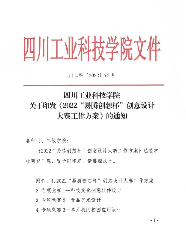 四川工业科技学院关于印发《2022“易腾创想杯”创意设计大赛工作方案》的通知