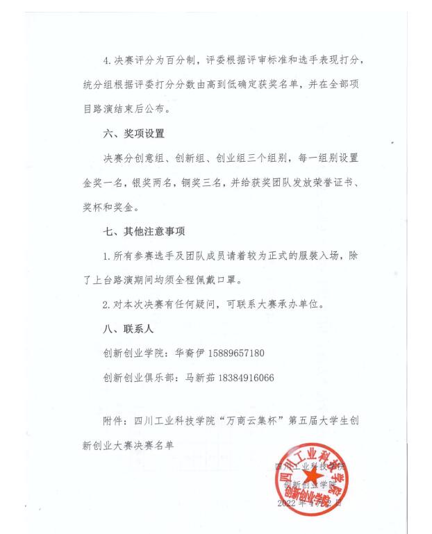 四川工业科技学院关于开展“万商云集杯”第五届大学生创新创业大赛决赛通知