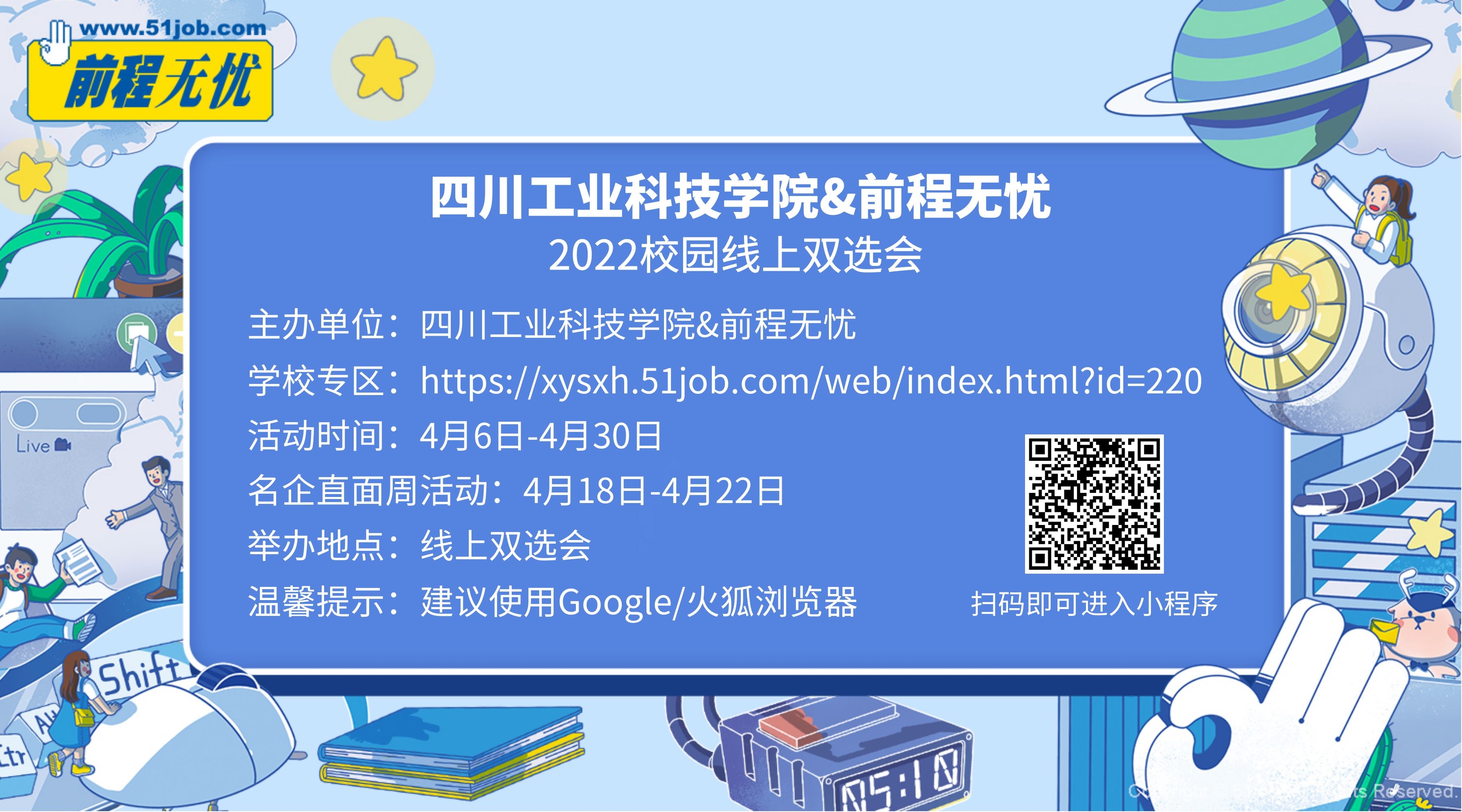 四川工业科技学院学校专区:https://xysxh.51job.com/web/index.html?id=220
