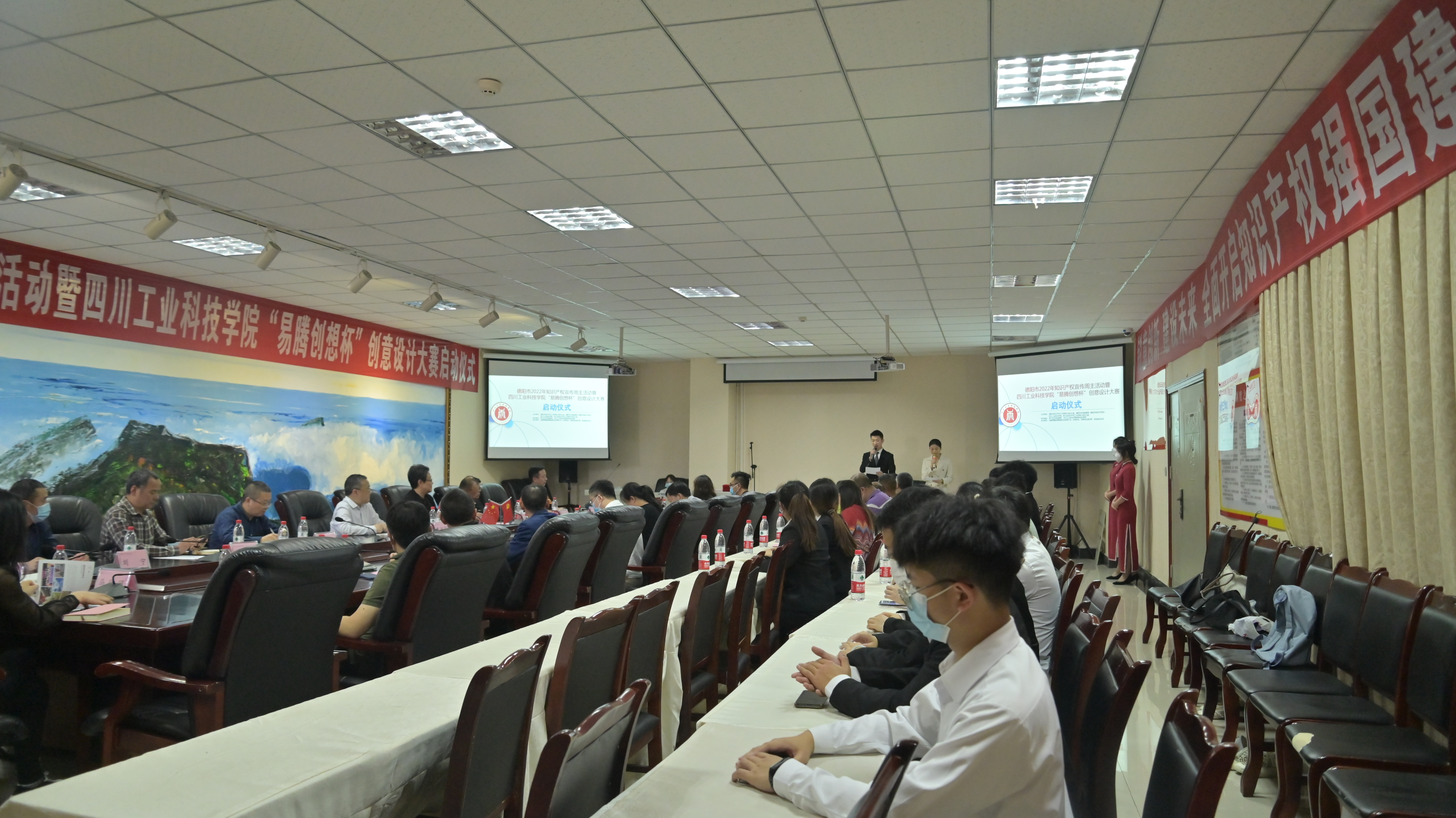 4月26日中午,德阳市2022年知识产权宣传周主题活动暨四川工业科技学院“易腾创想杯”创意设计大赛启动仪式在图书馆401会议室举行。学校副校长郭桂萍、德阳市市场监管局、罗江区市场监管局、成都易腾创想智能科技有限公司相关负责人和学校创新创业项目专家评审委员会成员及部分学生代表出席本次活动。