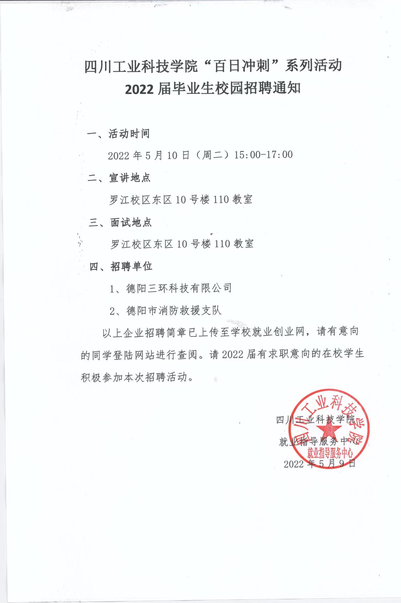 四川工业科技学院“百日冲刺”系列活动2022届毕业生校园招聘通知