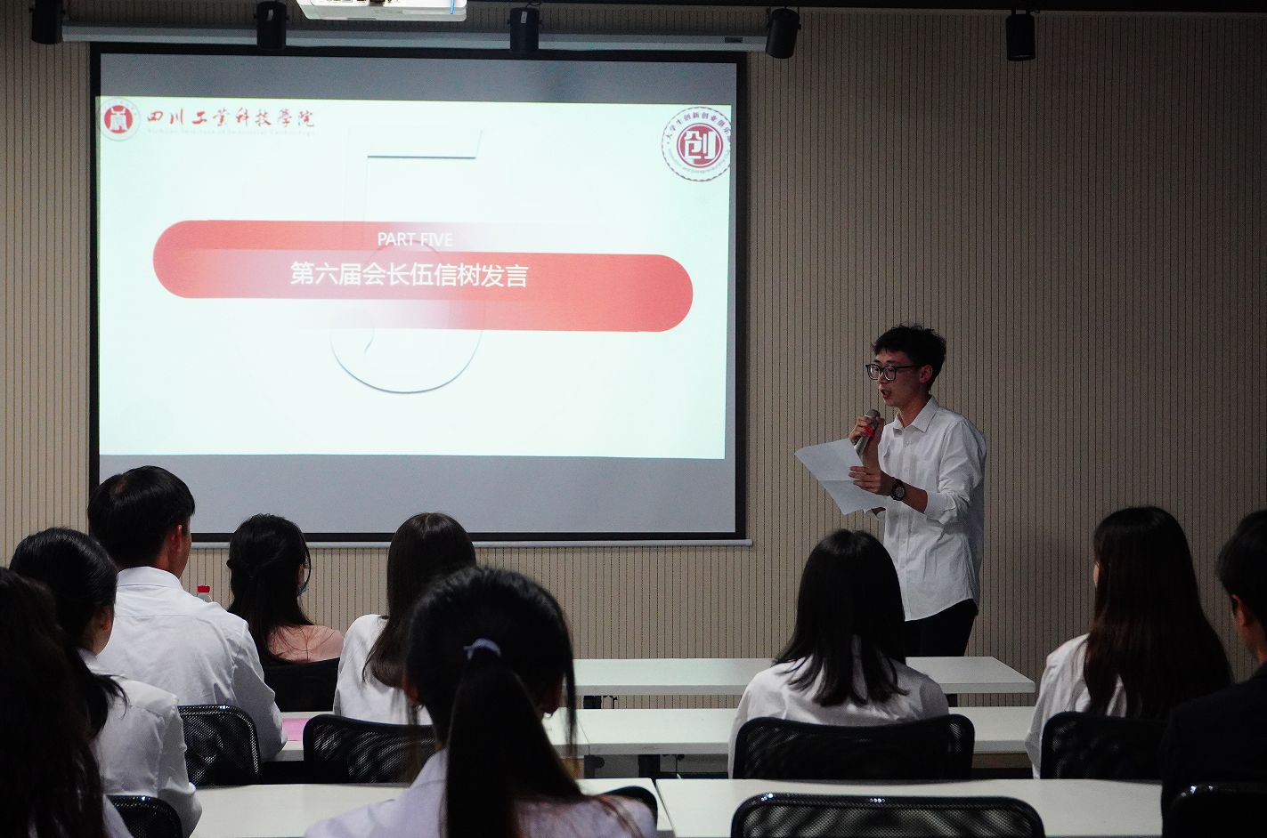 5月6日下午,四川工业科技学院第七届创新创业俱乐部换届大会在体育馆东门二楼会议室展开,指导老师曾尧出席了本次换届大会,第六届会长伍信树、第七届会长马新茹、第七届部长代表陈遥,第八届俱乐部成员参加了会议,会议由第八届团队成员林涛主持。