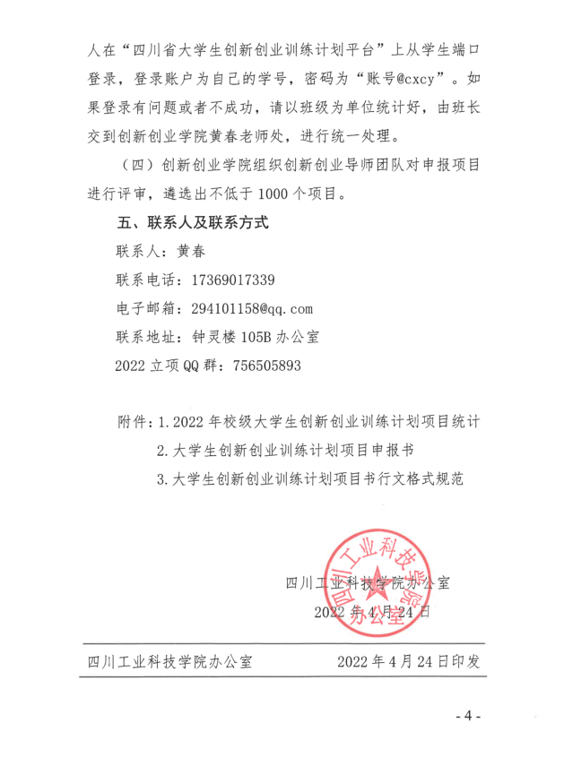关于开展2022年校级大学生创新创业训练计划立项工作的通知
