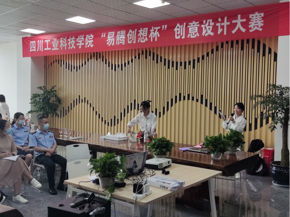 7月19号中午,为丰富同学们的校园文化生活,勇敢的展现自己,发挥自己的一技之长,我校创新创业学院联合食品学院、教务处在雁江图书馆一楼大厅举行2022“易腾创想杯”创意设计大赛专项竞赛2食品艺术设计之英式调酒现场决赛,食品学院的几位老师担当评委,余喜露、张雄同学担任主持人,创新创业学院曾尧副院长等创新创业专家评审委员、部分项目指导老师、罗江区市场监管局领导莅临现场。