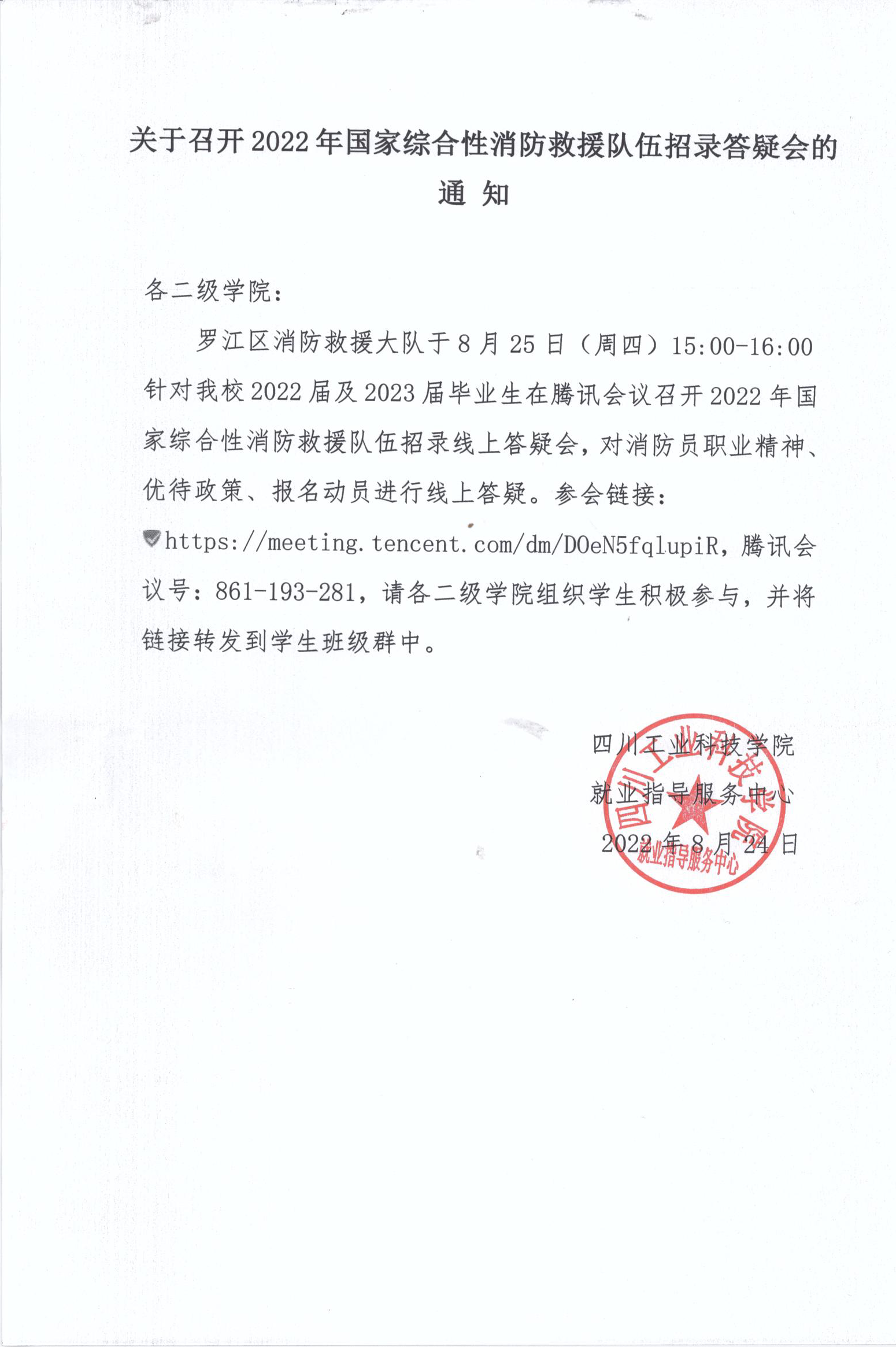 关于召开2022年国家综合性消防救援队伍招录答疑会的通知