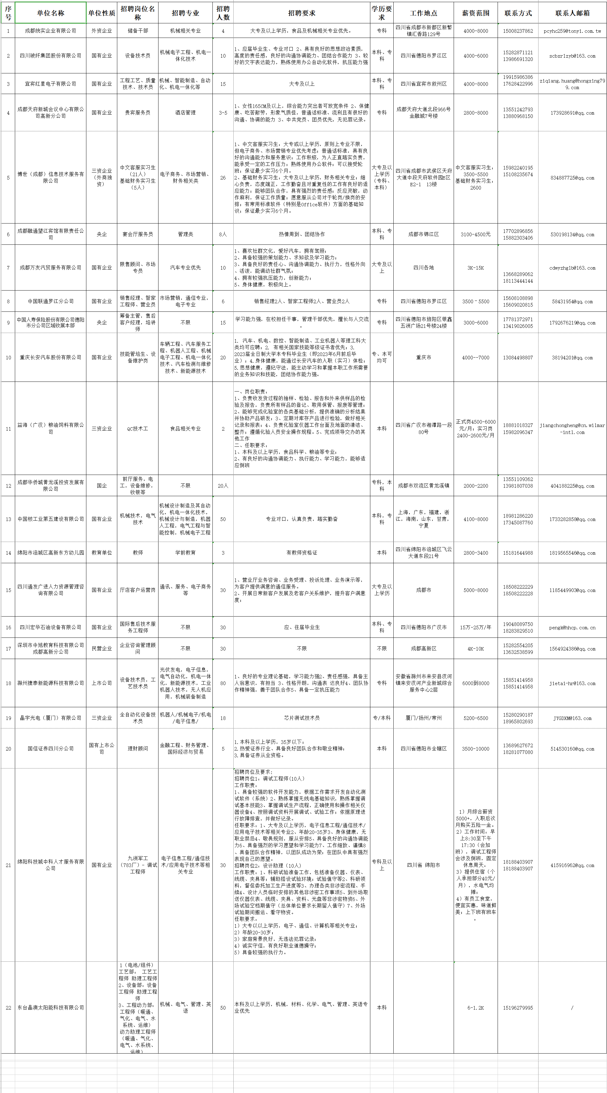四川工业科技学院2023年夏季校园双选会招聘企业一览表(持续更新中)