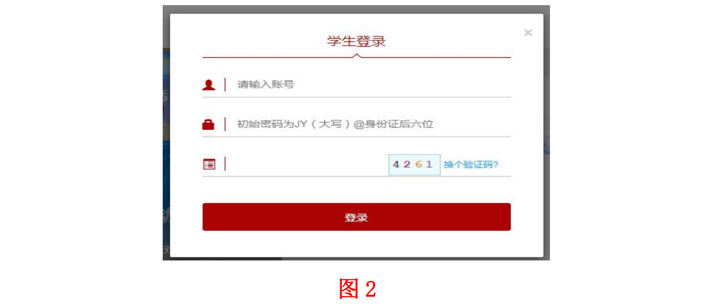 (二)输入账号(账号为学生本人的学号)、密码【初始密码为:JY