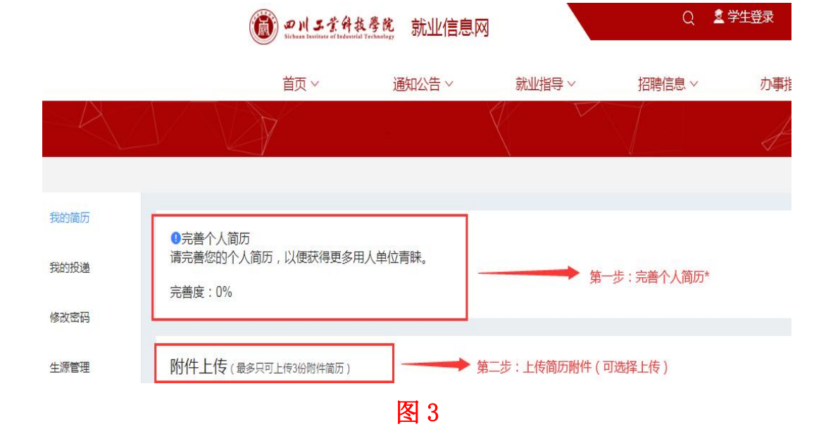 简历前,必须先在“完善个人简历”功能中上传个人简历)。如图 7 所示。