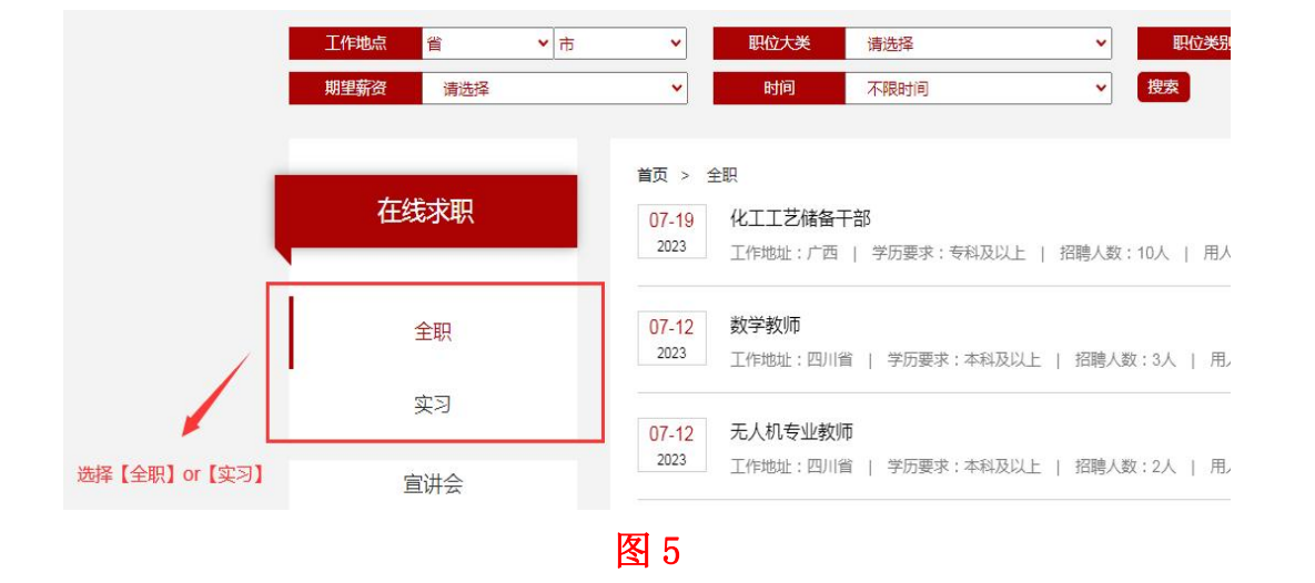 页面,选择“全职”项目。如图 4、图 5 所示