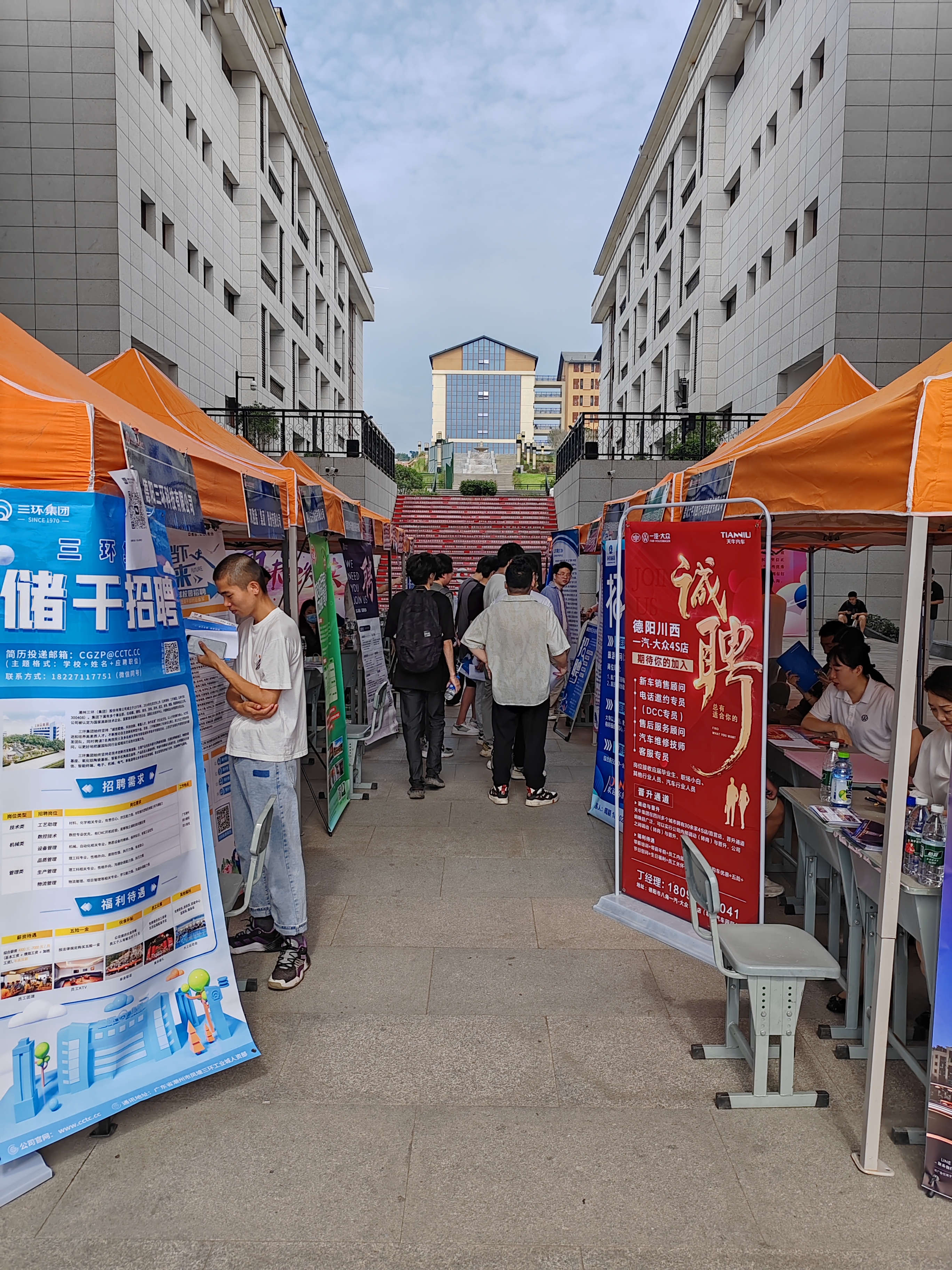 7月6日上午,我校在龑江综合楼广场举办2024届毕业生返校招聘会,本次招聘会邀请到双胞胎(集团)股份有限公司、德阳三环科技有限公司、中创金建技术集团有限公司、绵阳惠科光电科技有限公司等近30家用人单位参会,为我校2024届毕业生提供500余个工作岗位。