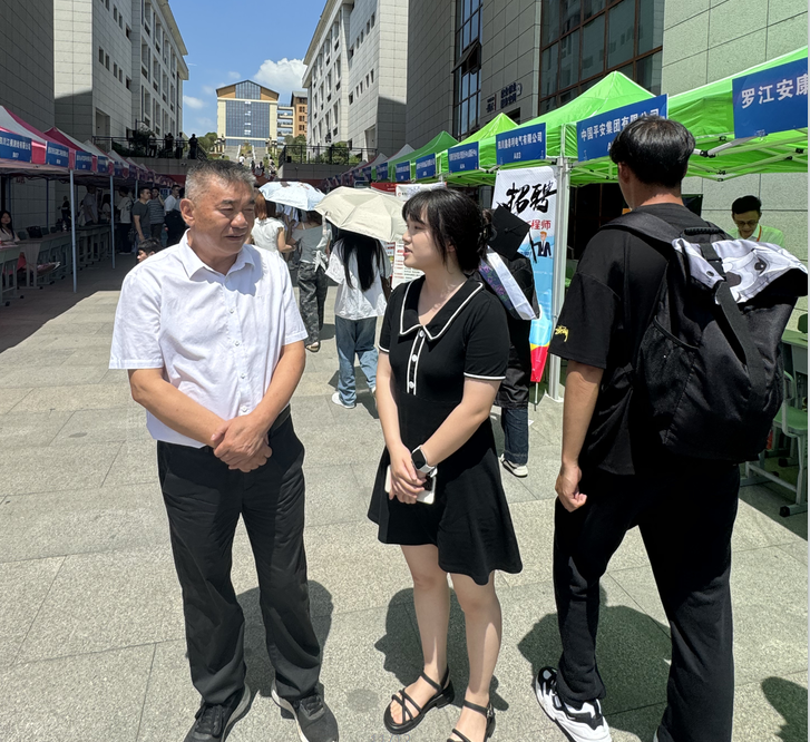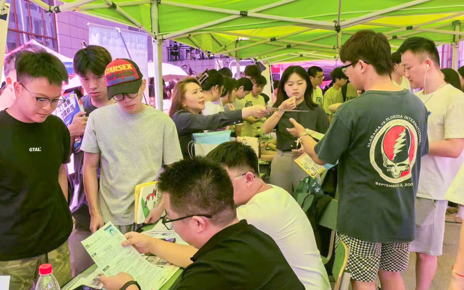 7月9日,在学校2025届毕业生返校参加毕业典礼之际,“毕业不告别,就业不断线”主题招聘会在龑江综合楼广场同步举行。50余家省内外优质企业携2000余个岗位入驻招聘现场,涵盖信息技术、智能制造、食品饮料、教育文旅、艺术设计等多个领域。