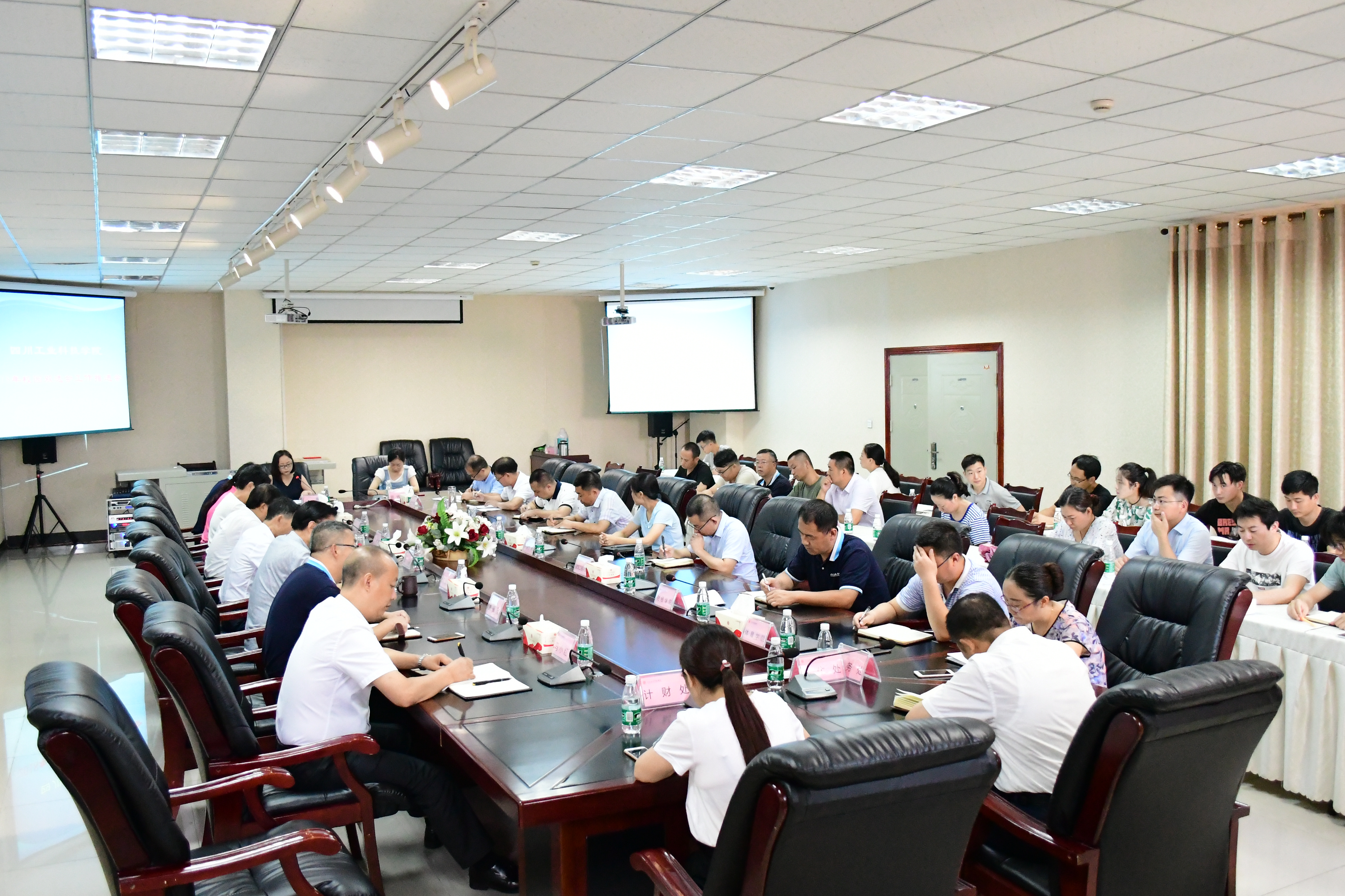 7月25日上午,2018年校园双选会工作推进会在图书馆D-01会议室召开。全体校领导出席会议,各二级学院院长、书记,各职能部门负责人,2019届本专科毕业班辅导员参加了这次会议,会议由副校长何义兴主持。